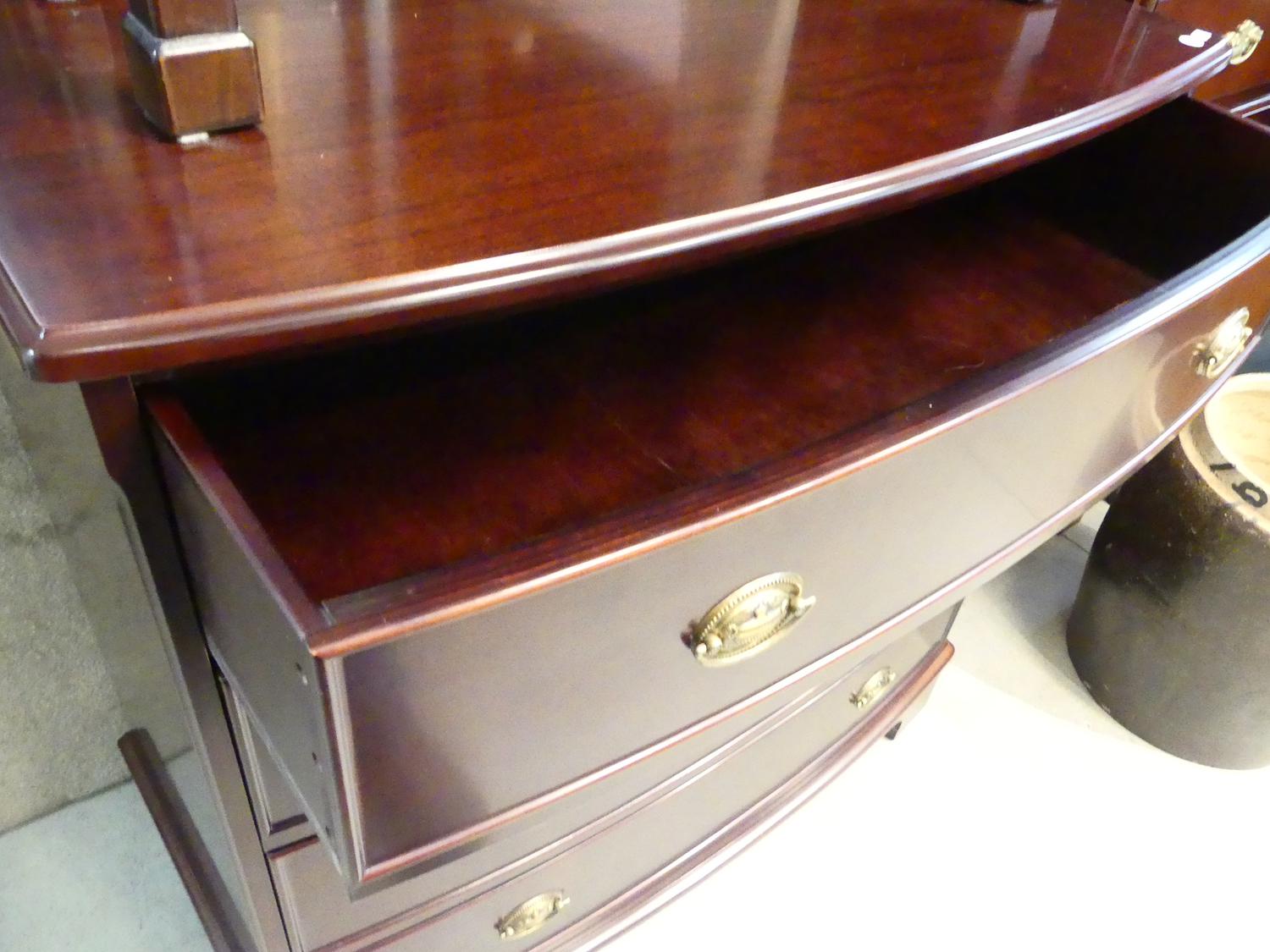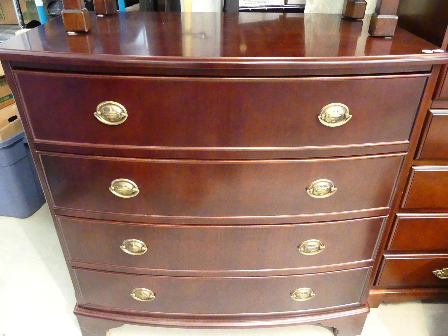 mahogany bow front chest of drawers, bombay furniture co, 36" x 36" x 19 1/2"
