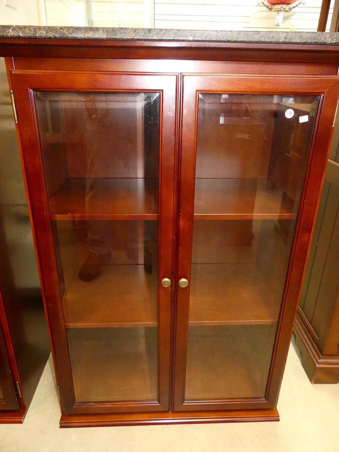 mahogany glazed side cabinet with marble top, bombay furniture co, 45" x 28" x 16"