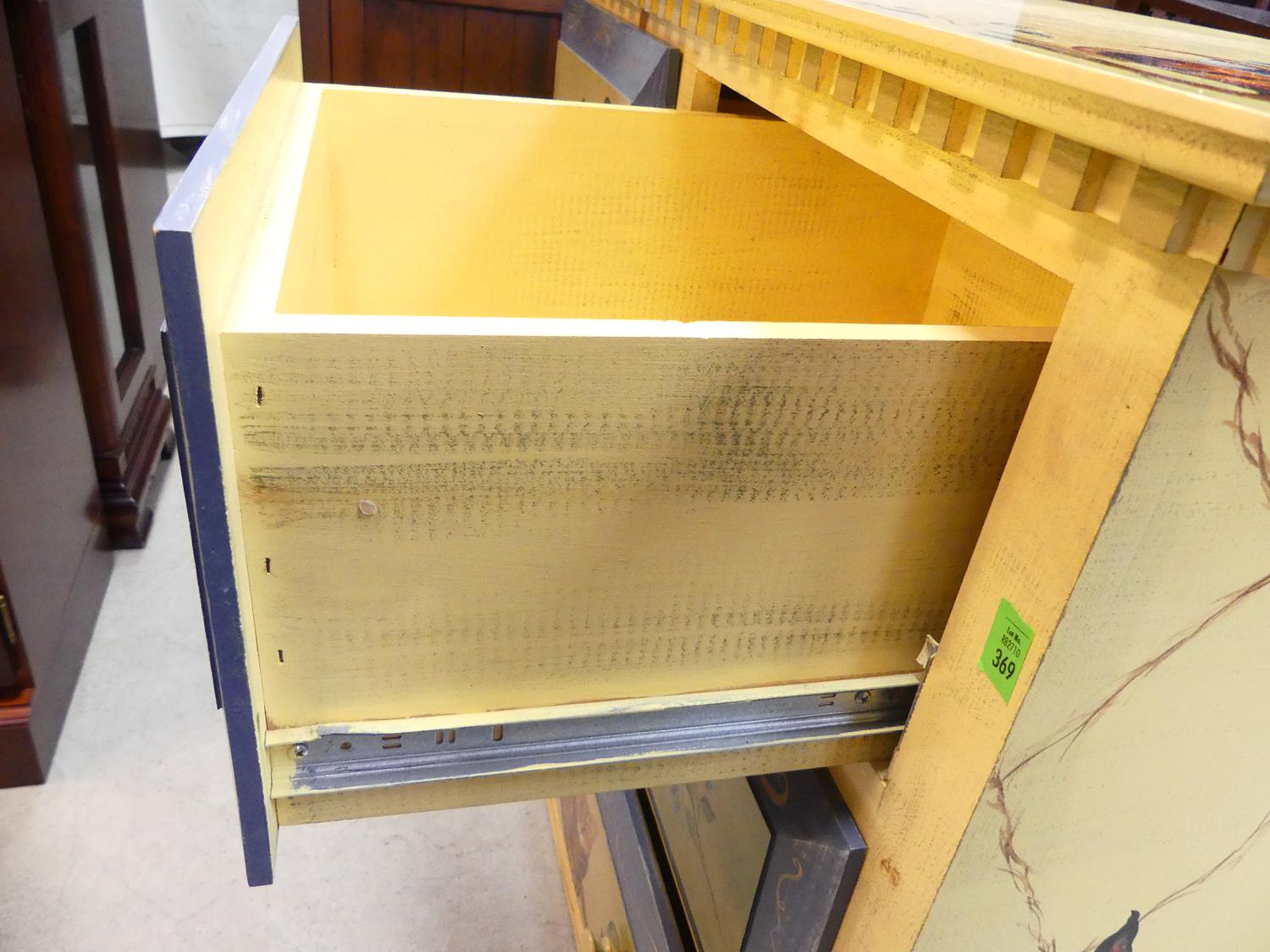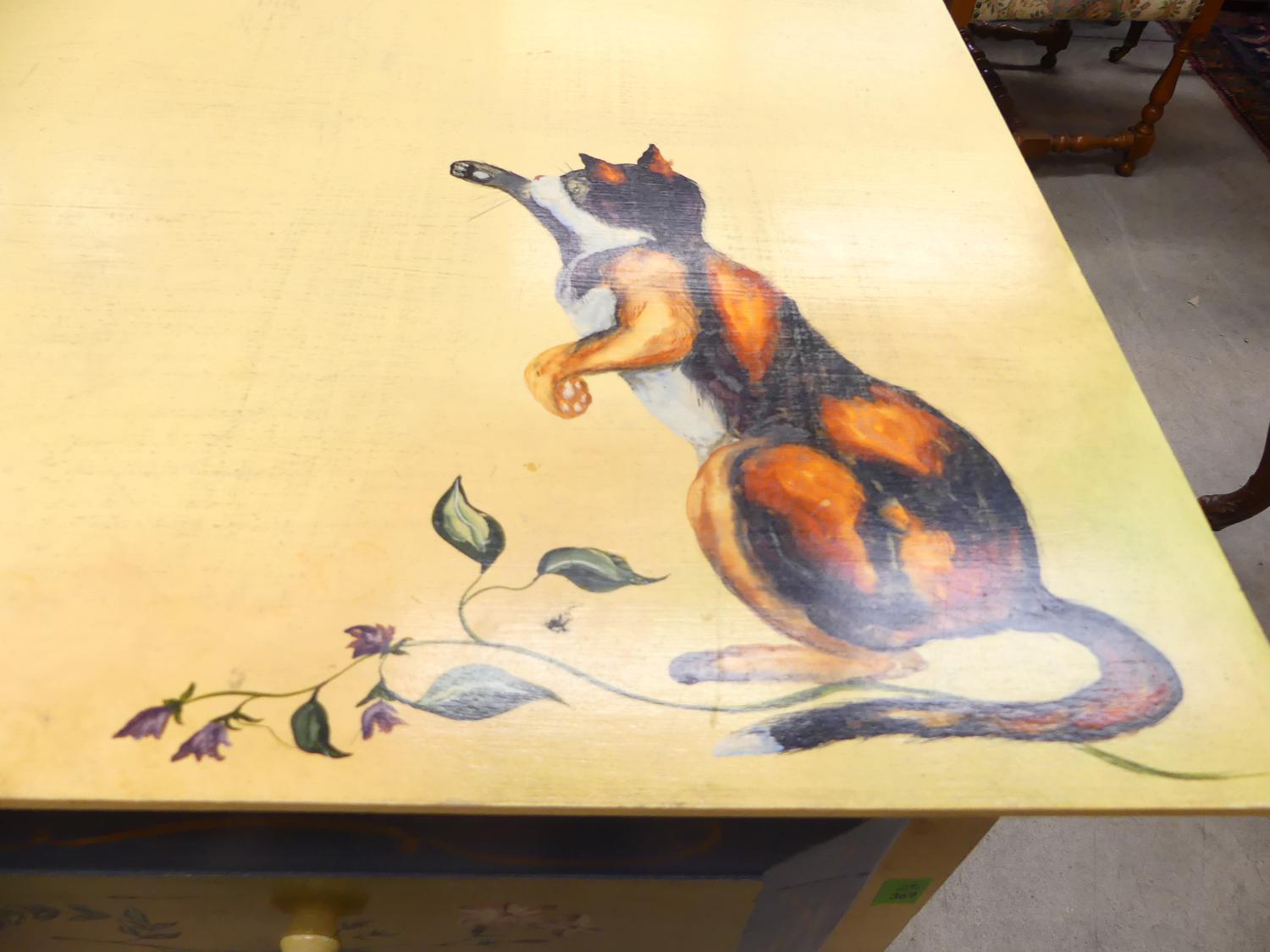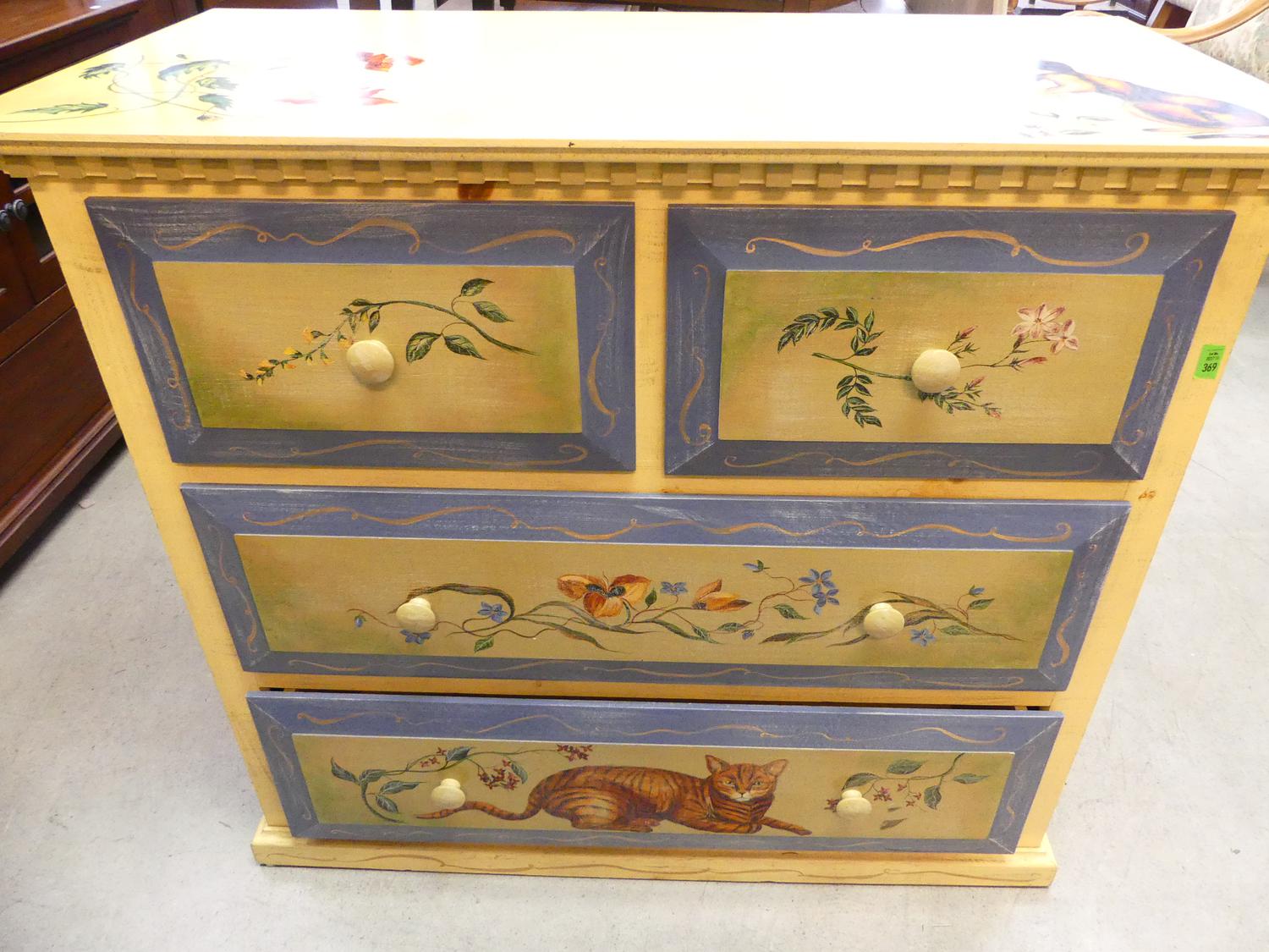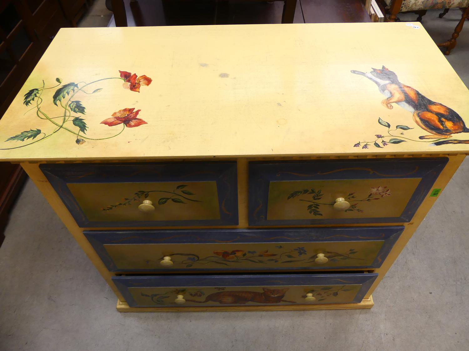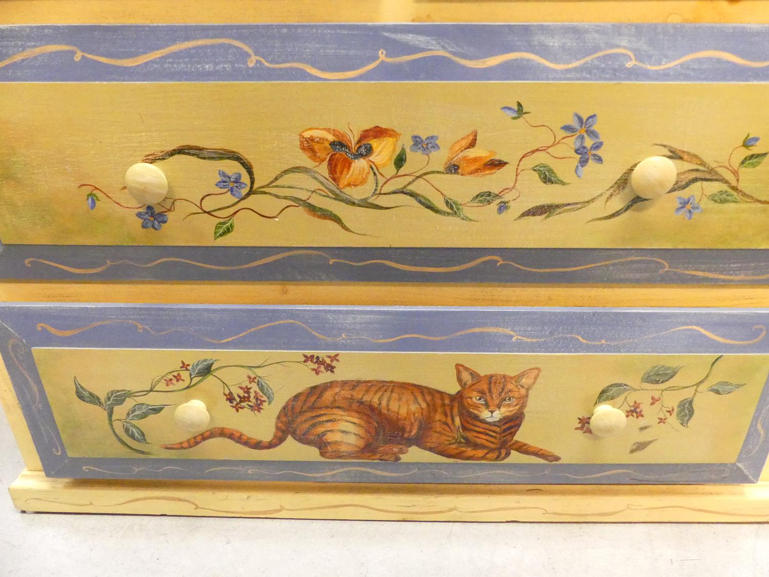 painted chest of drawers decorated with cats and flowers, 35" x 40" x 20"