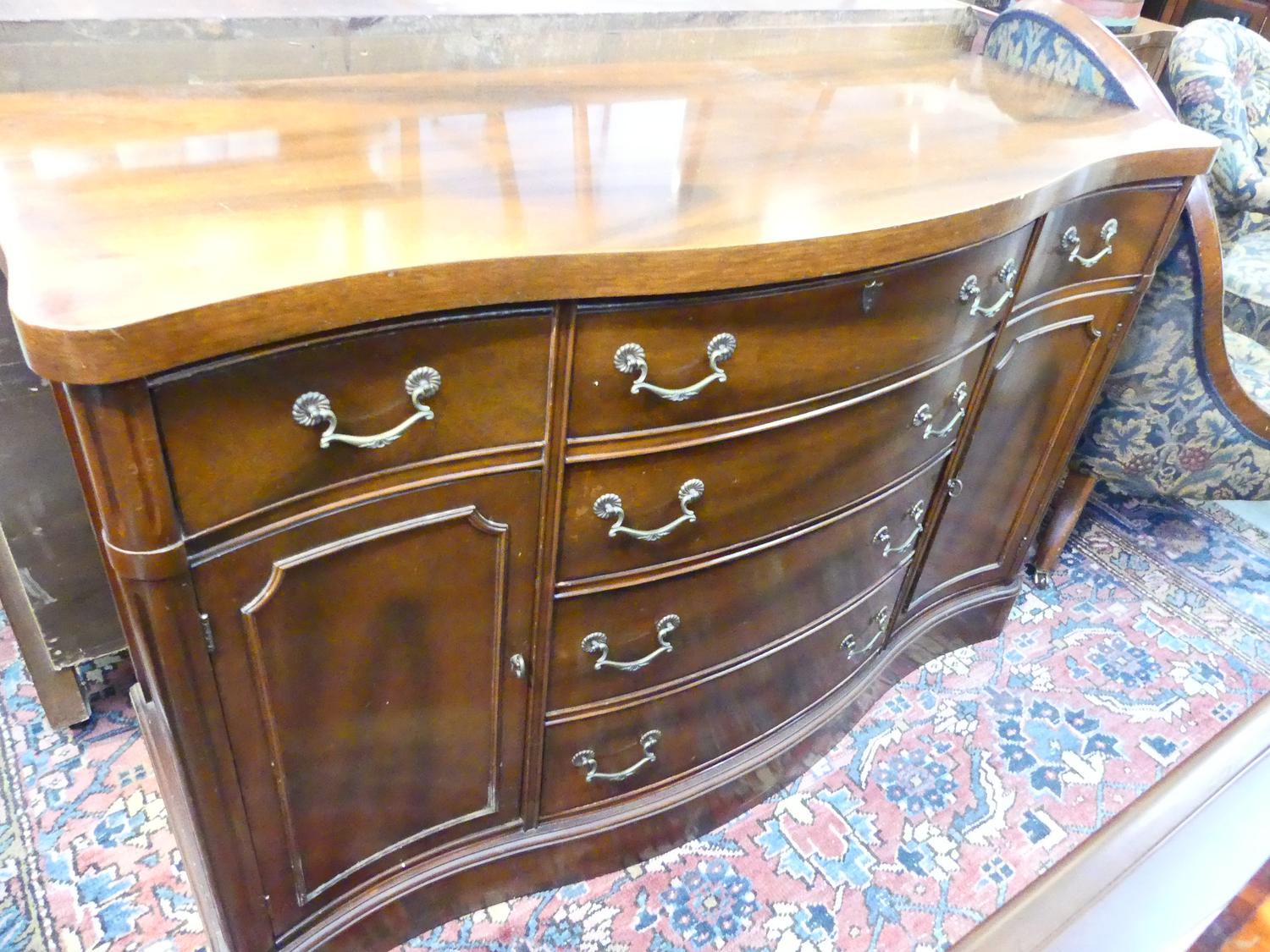 mahogany serpentine sideboard, 35 1/2" x 54" x 21"