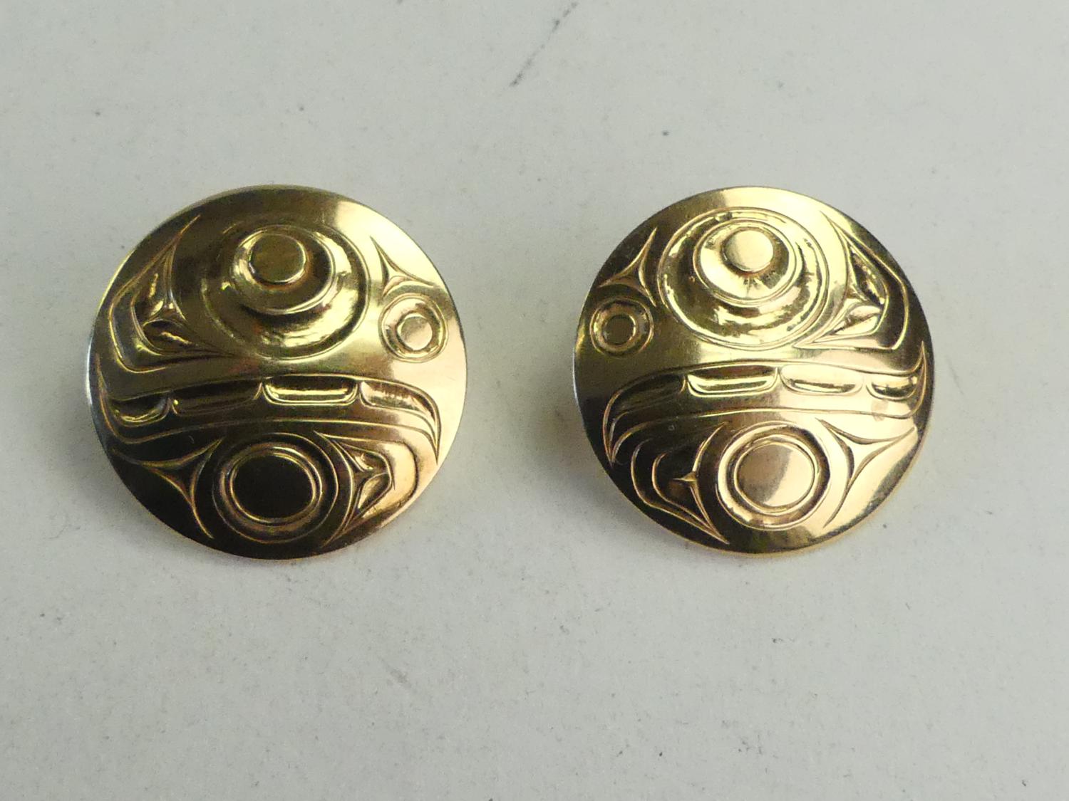 northwest coast native 14k gold earrings, w/a 9.8 grams