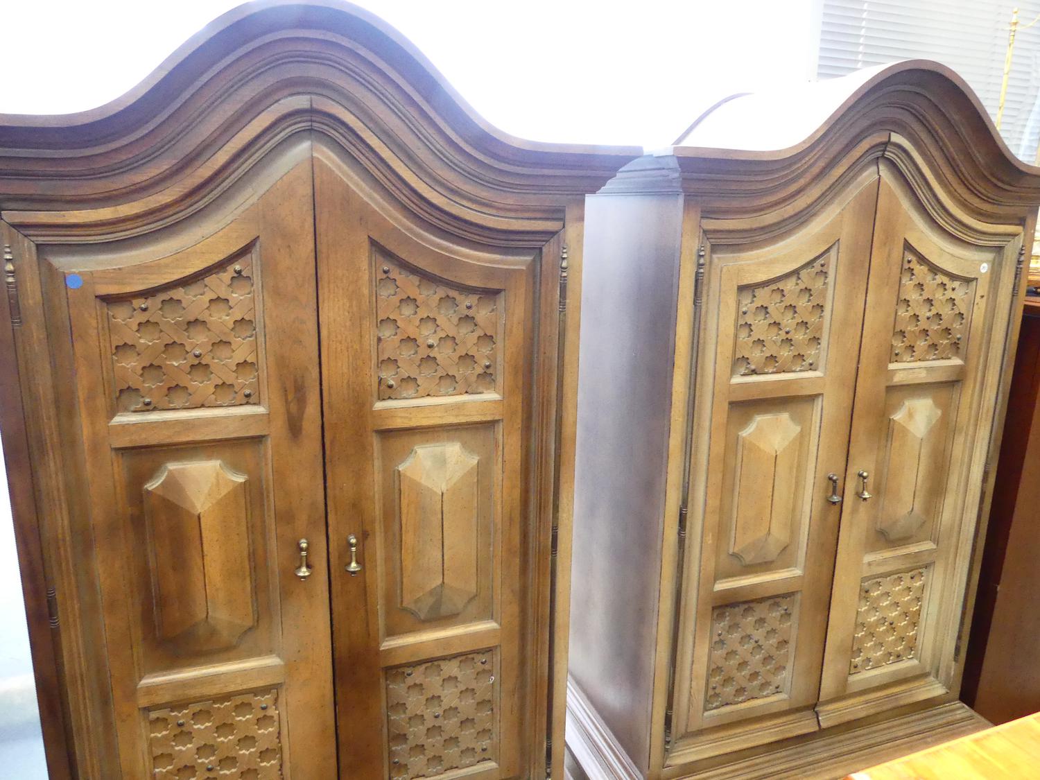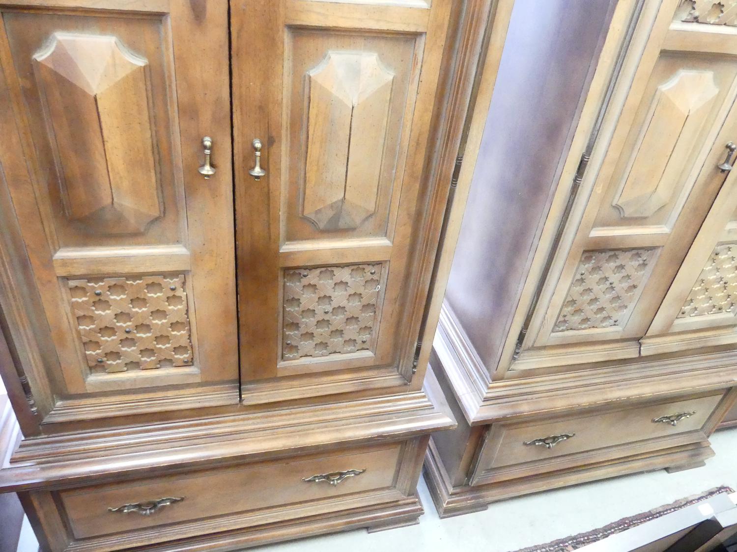 pair of italian provincial style side cabinets, mid 20th century, 75" x 38 1/2" x 20"