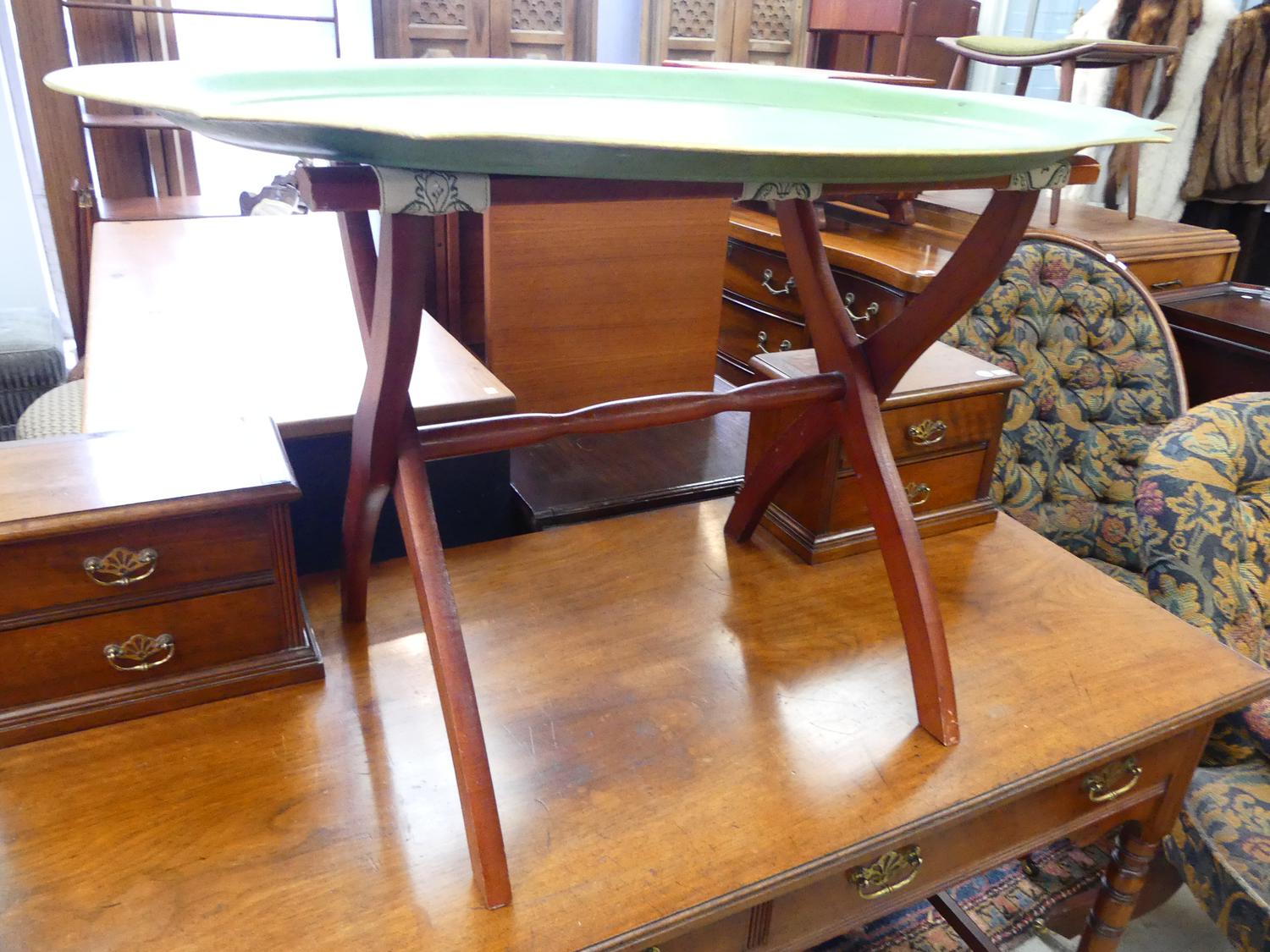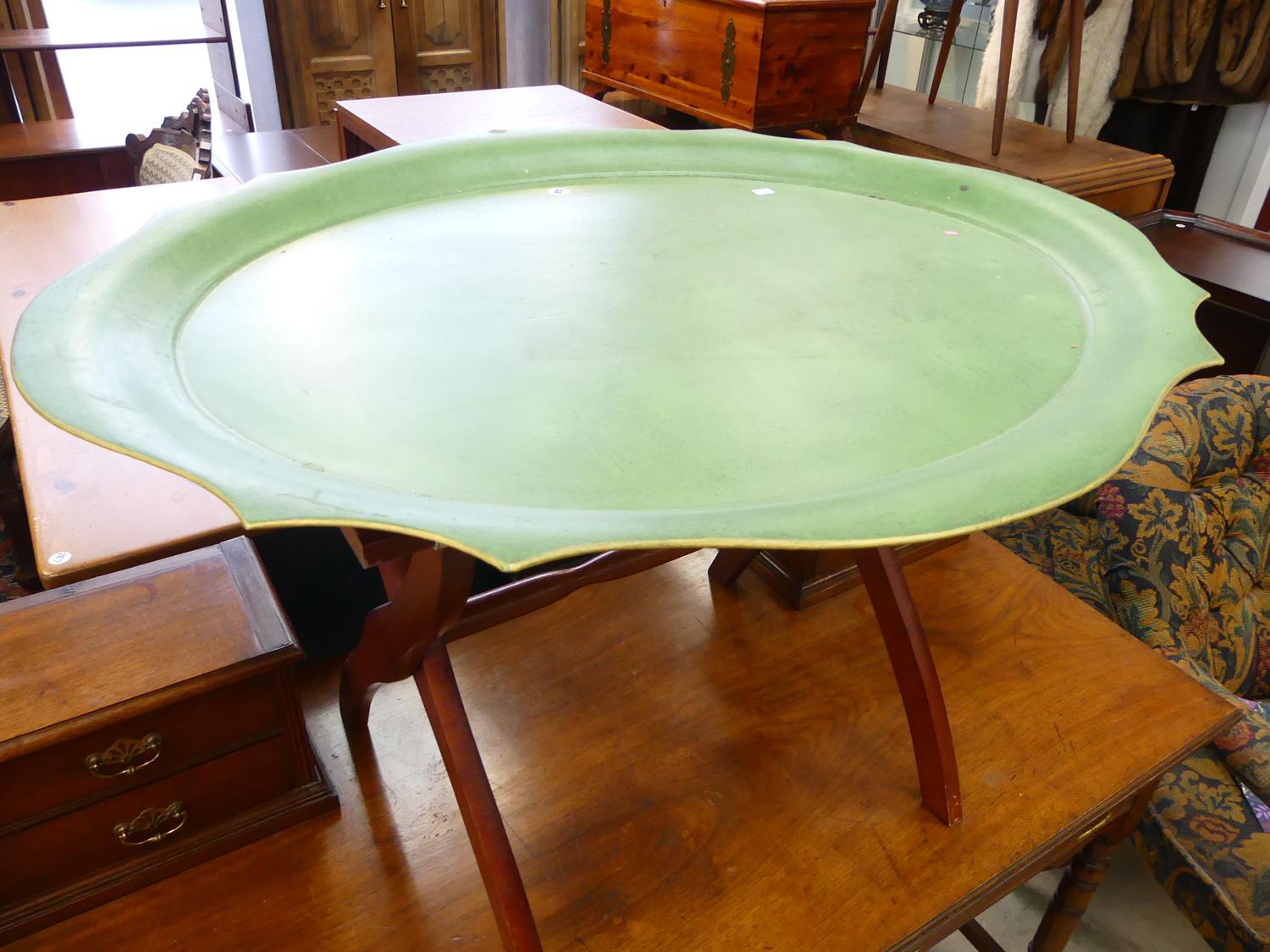 late 19th/early 20th century green tole tray, 31" x 26"