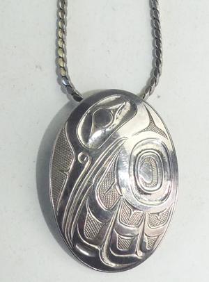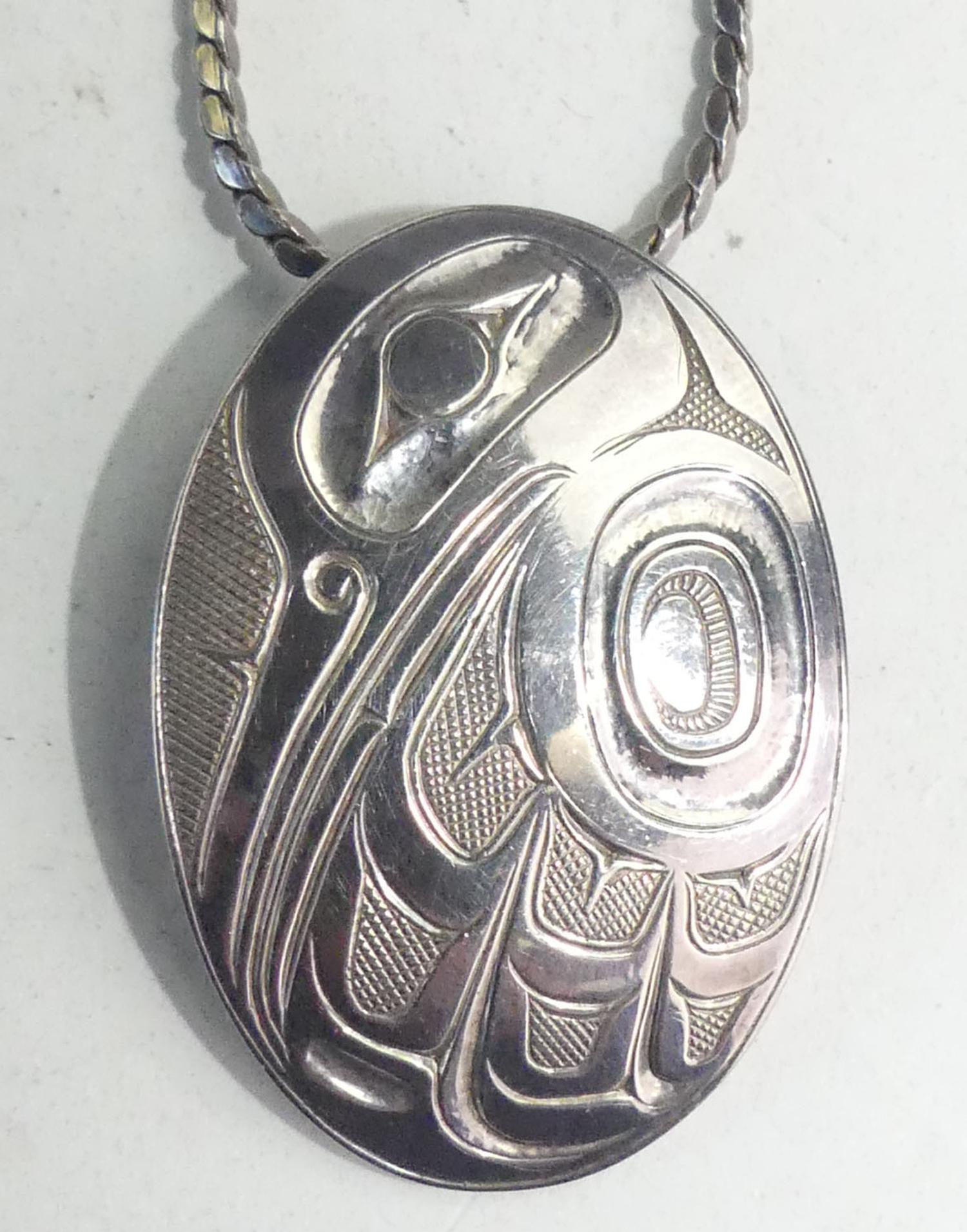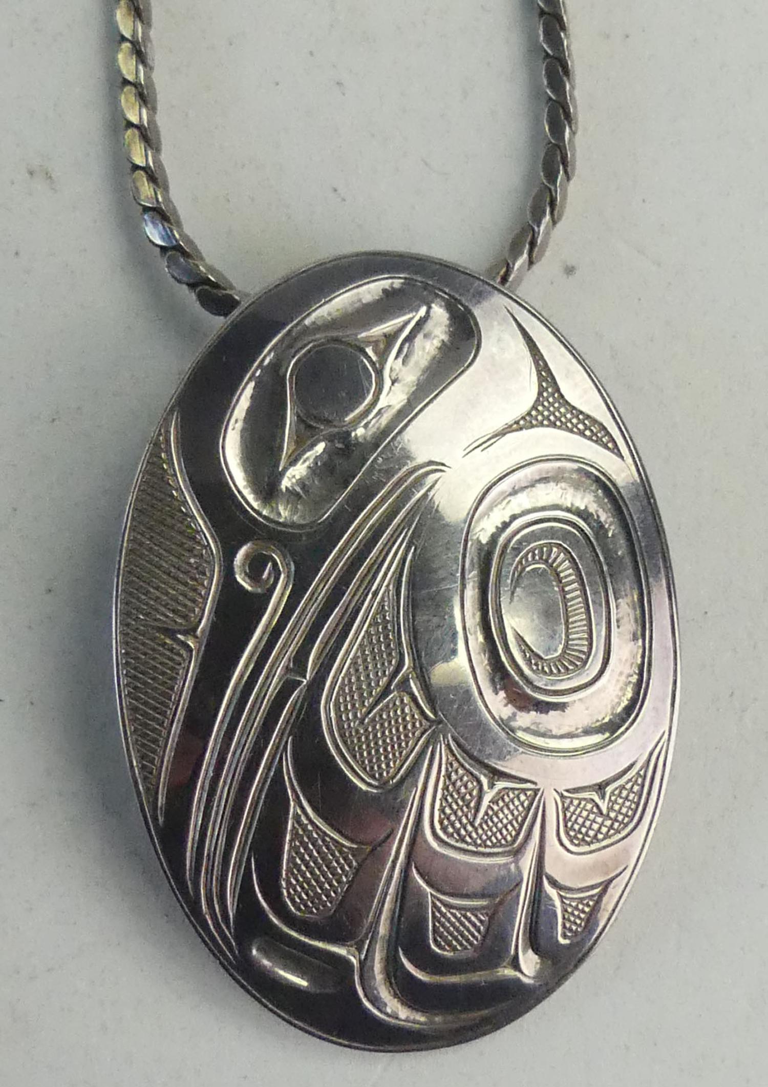northwest coast native sterling silver signed pendant, r. adkins, # 185