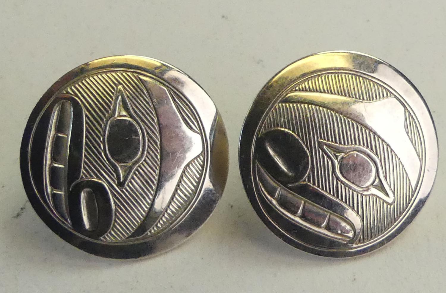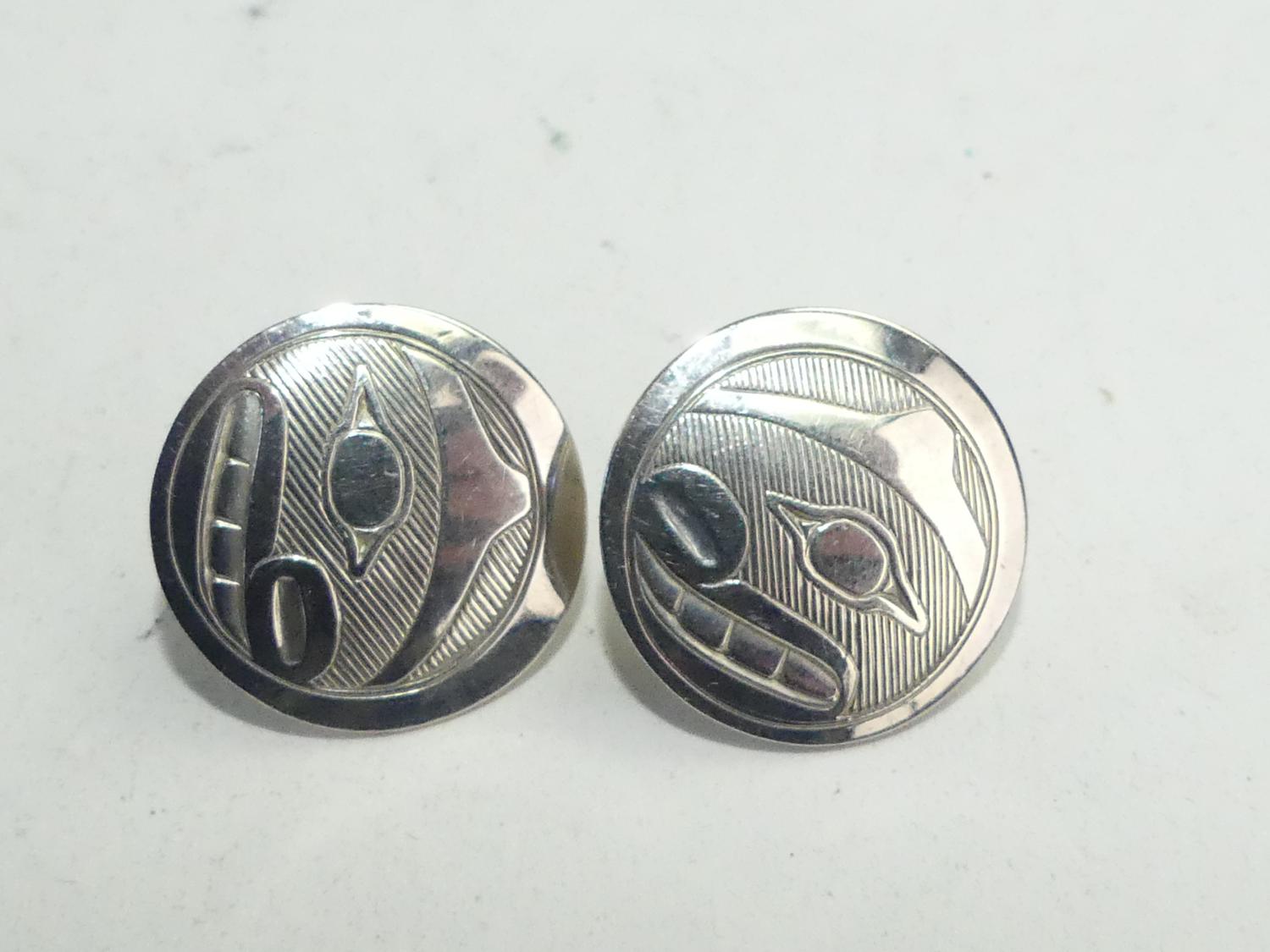 northwest coast native sterling silver earrings, r. adkins, 6.1 grams