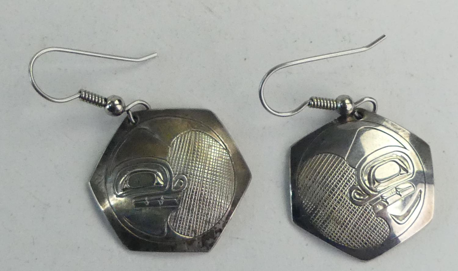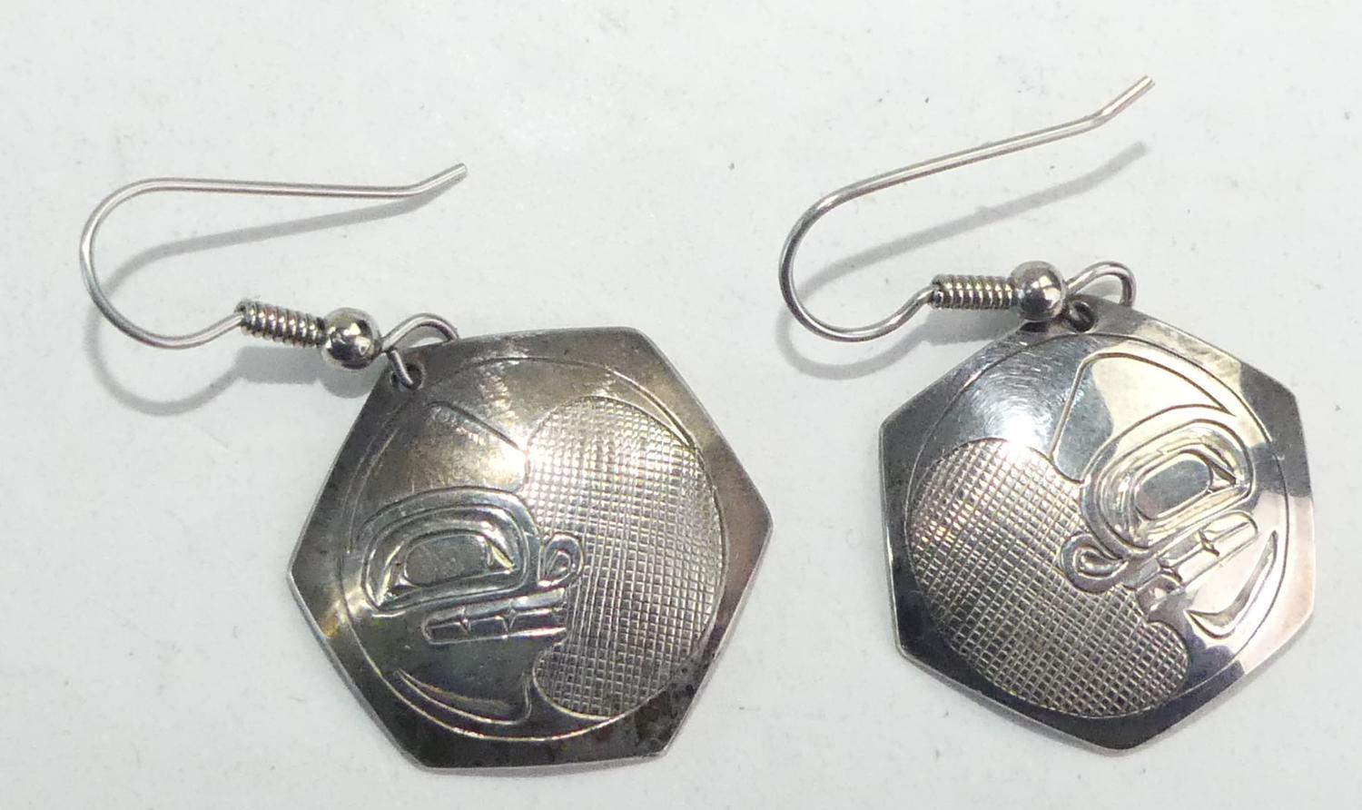 northwest coast native sterling silver earrings, dd