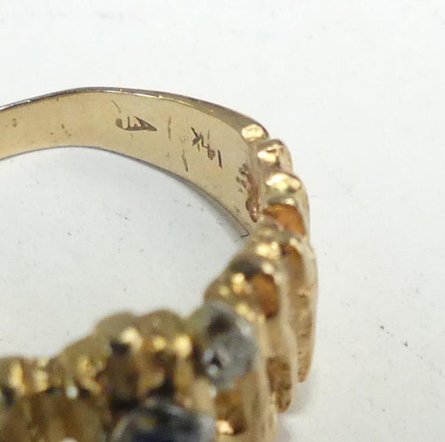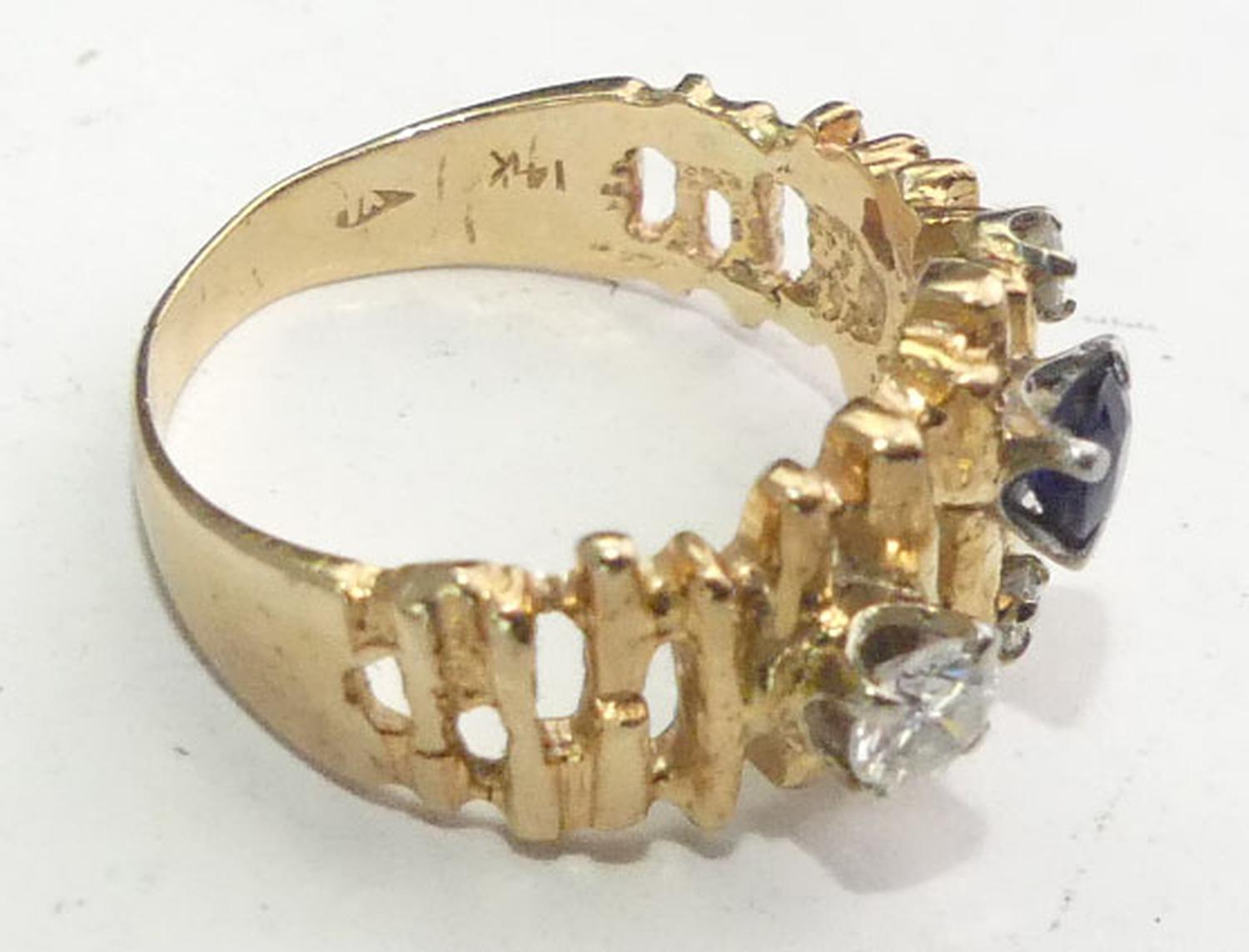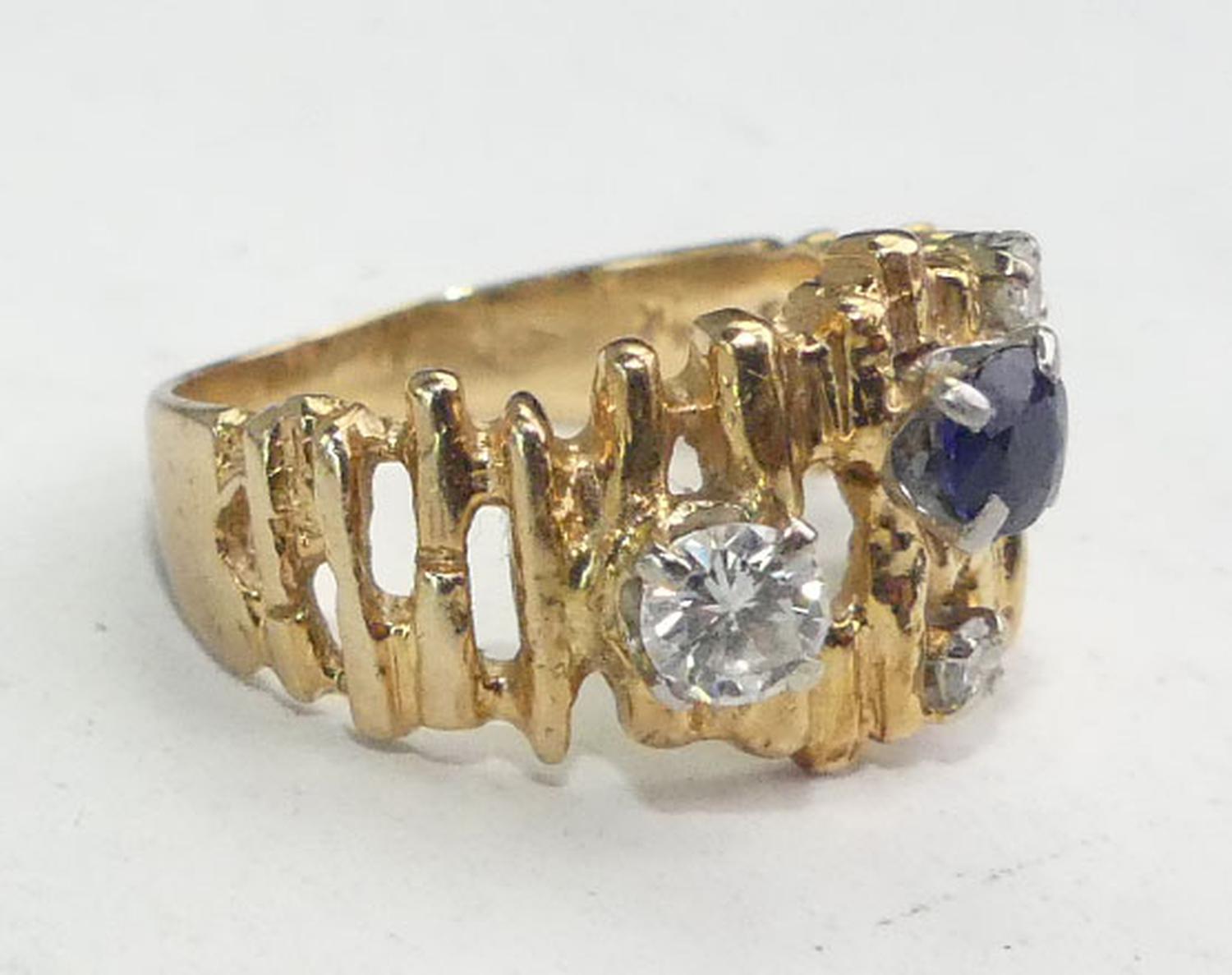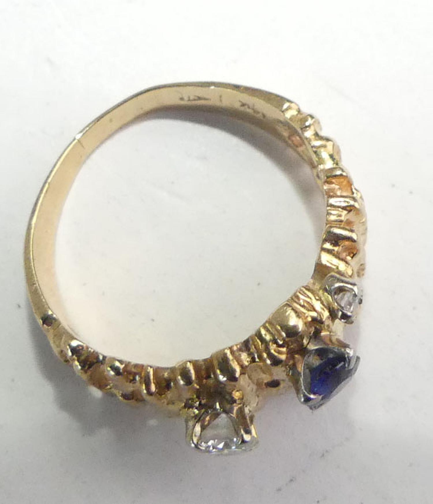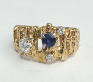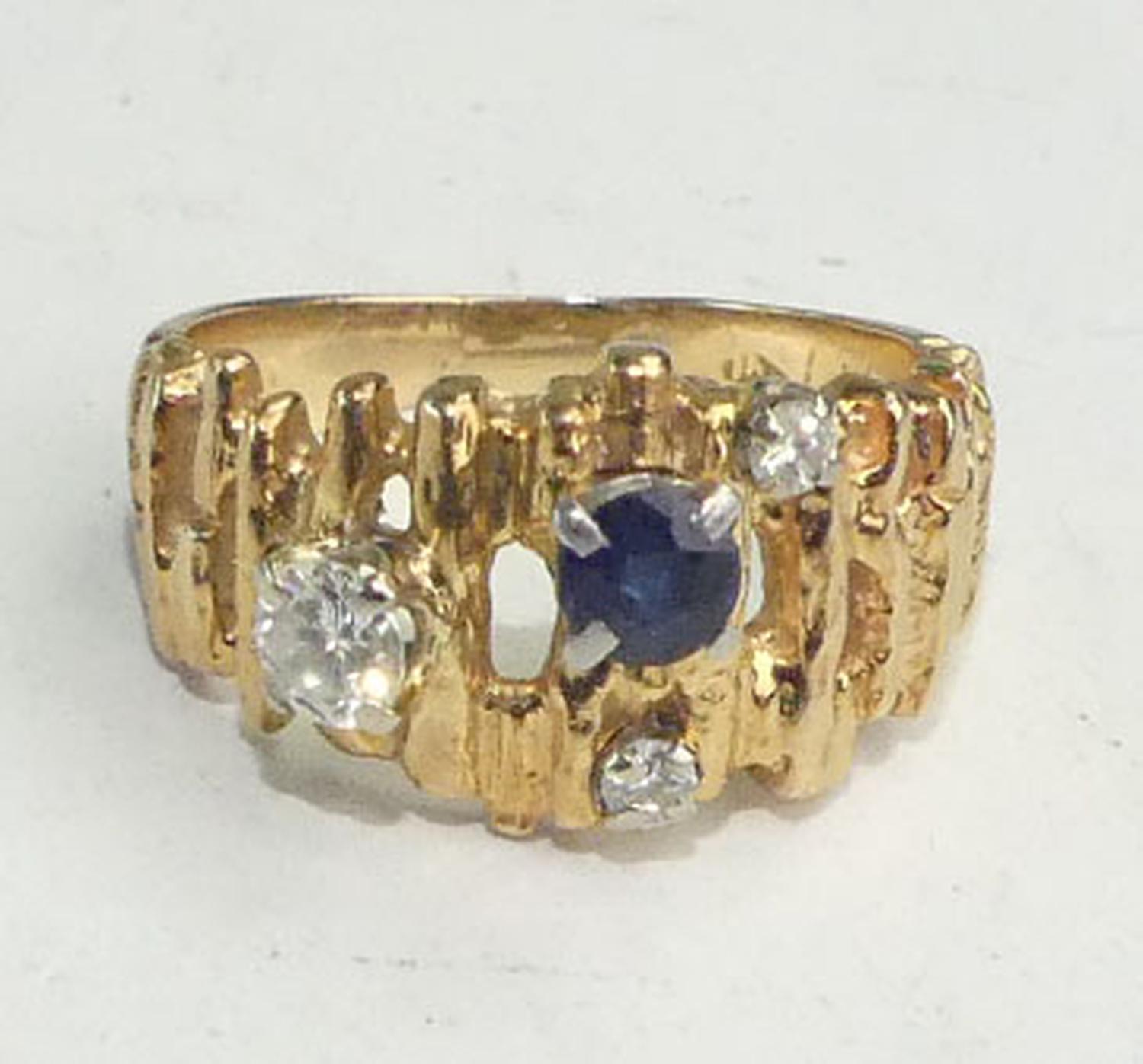 14k diamond and sapphire brutalist ring, size 7 1/4, weighing approx 5.9 grams