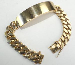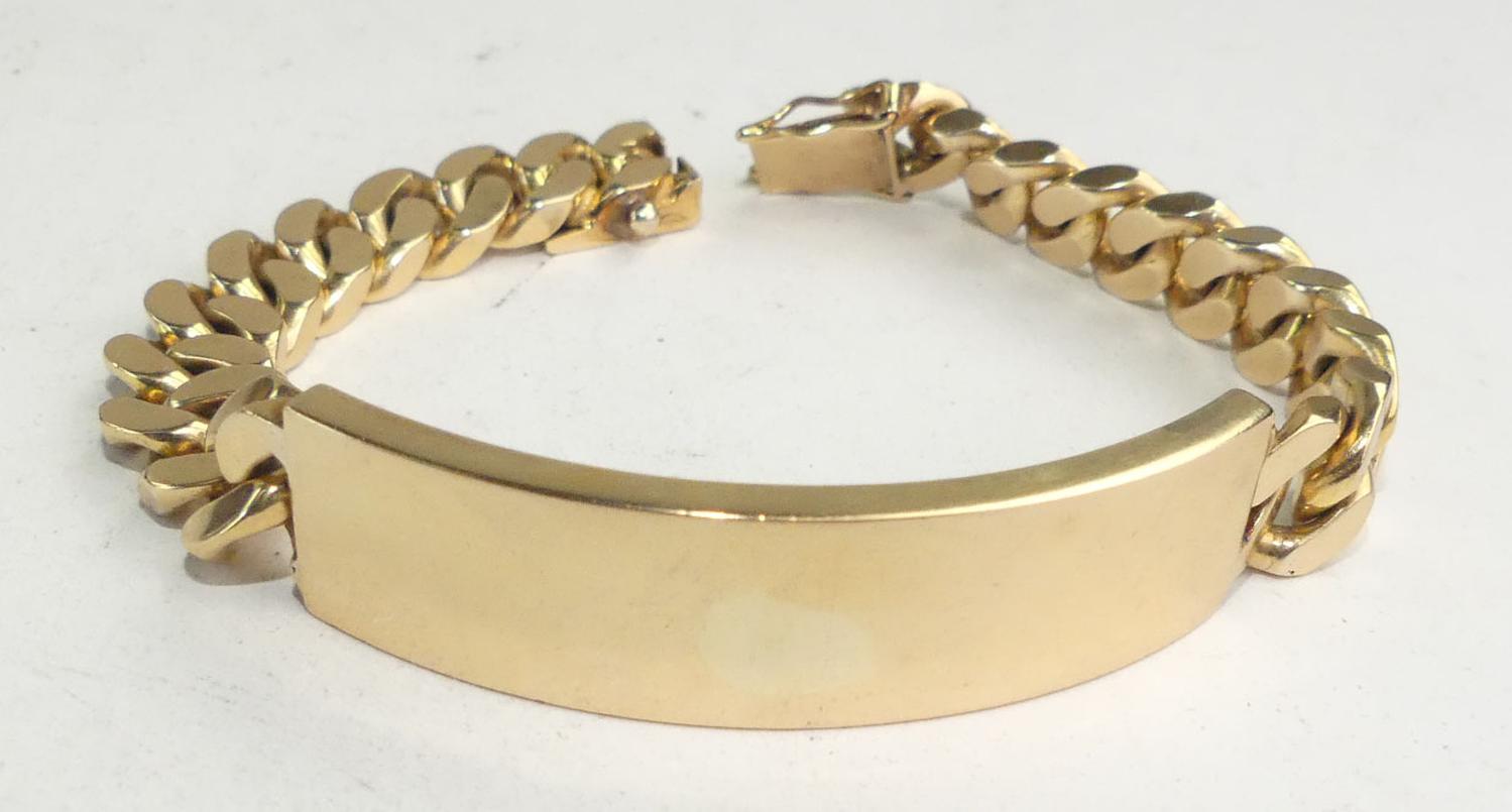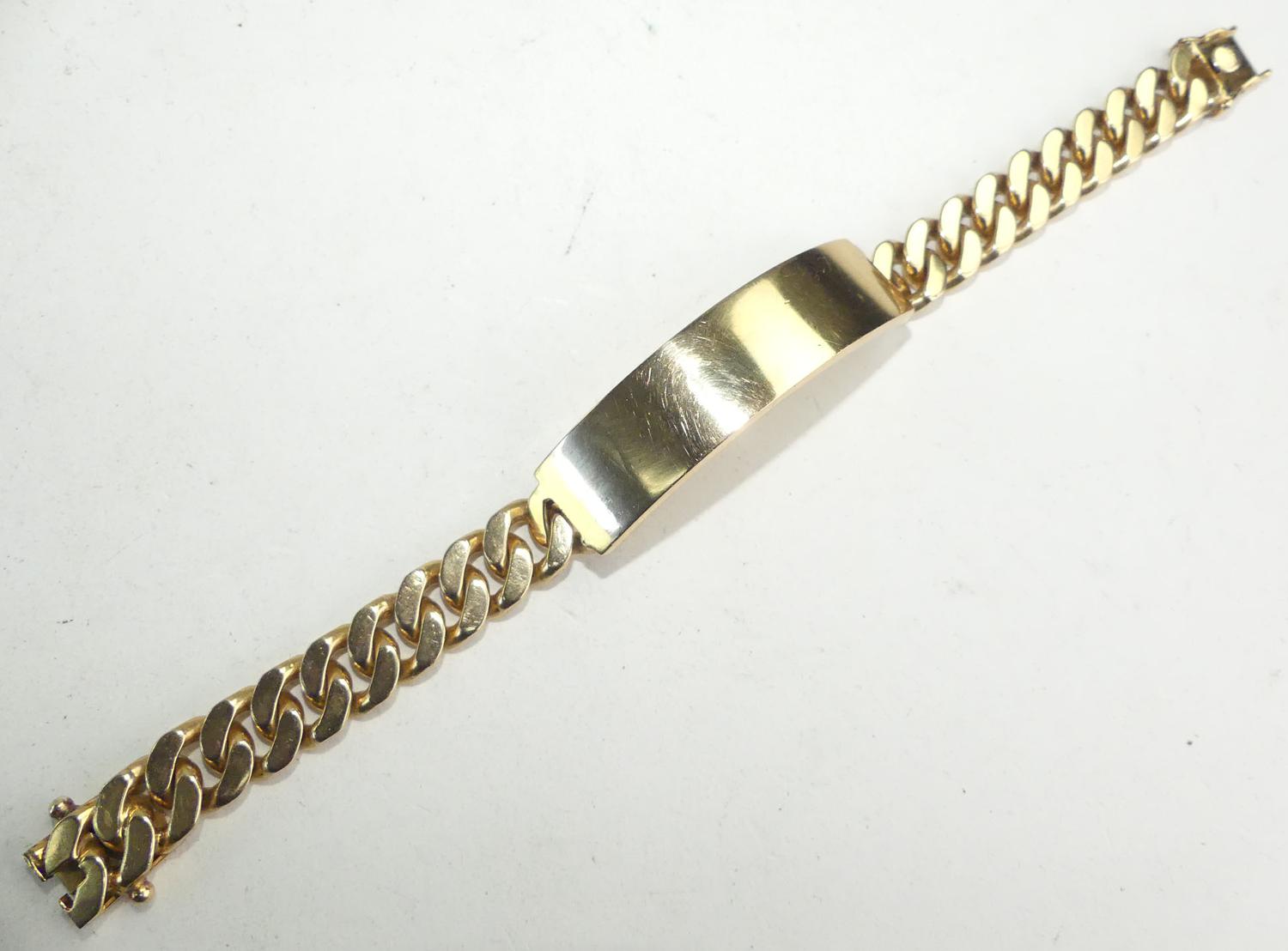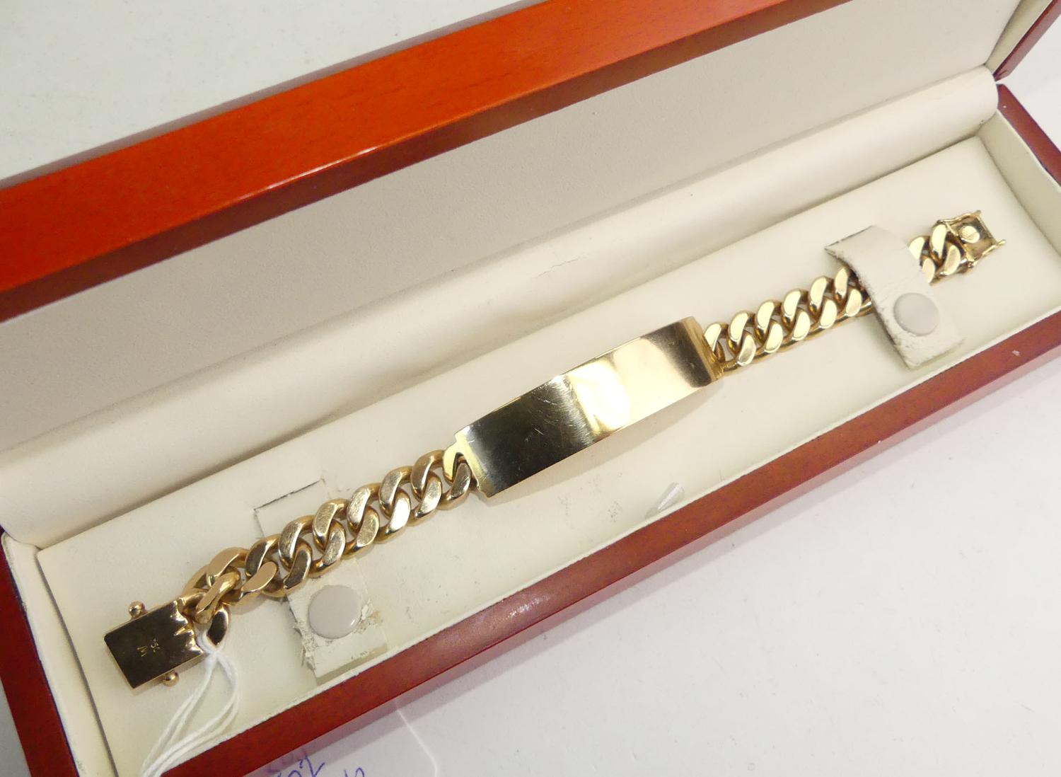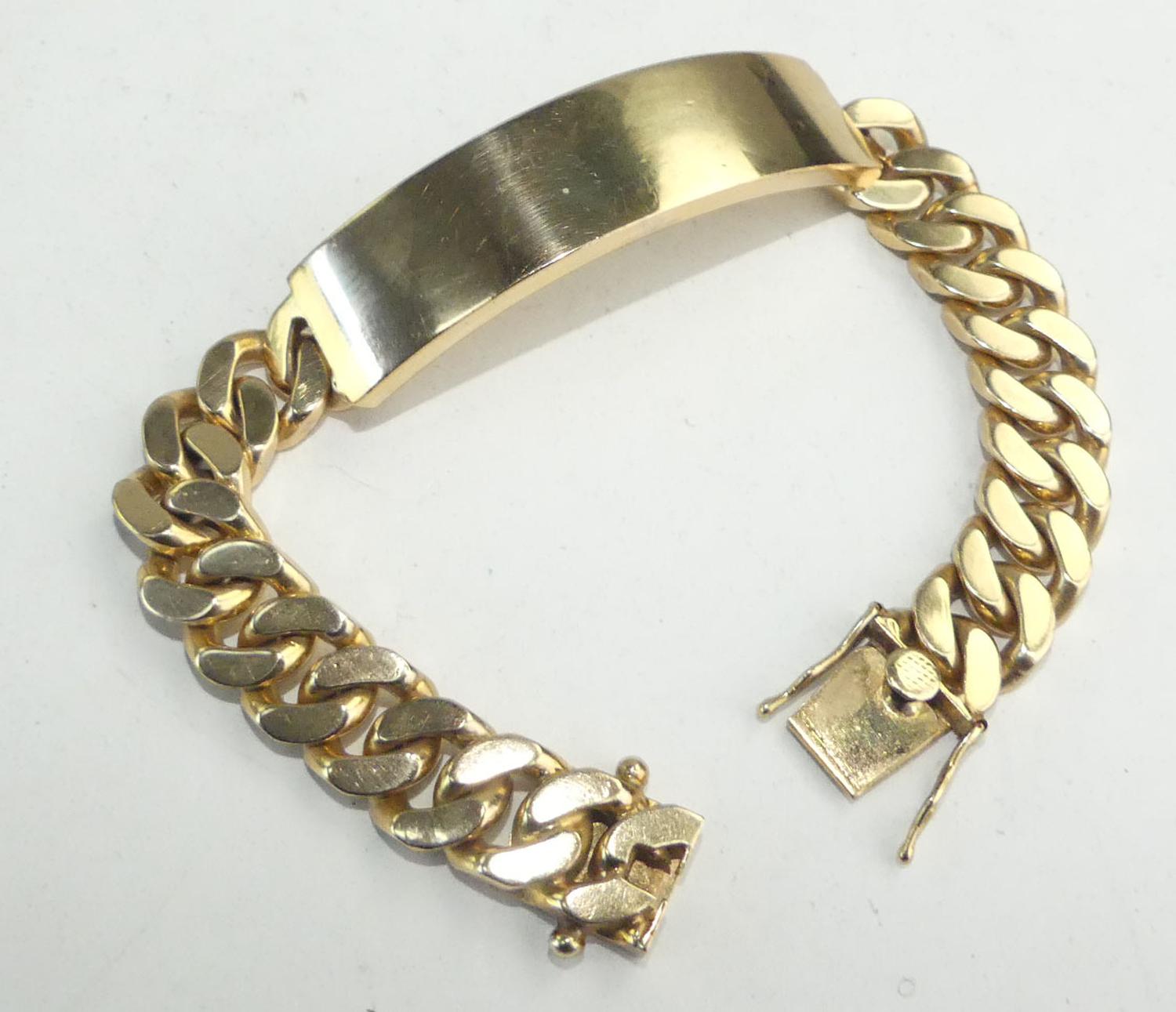 mens 18k curb link id bracelet, length 8", weighing approx 76.6 grams, with appraisal