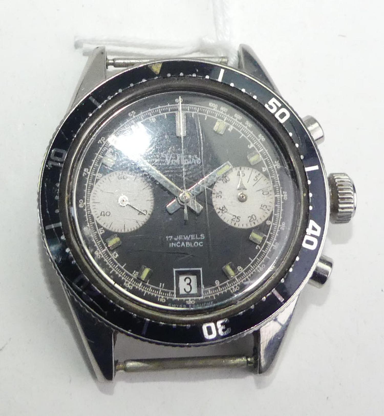 vintage men's 17 jewel valjoux chronograph wrist watch