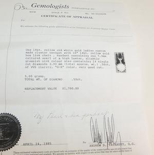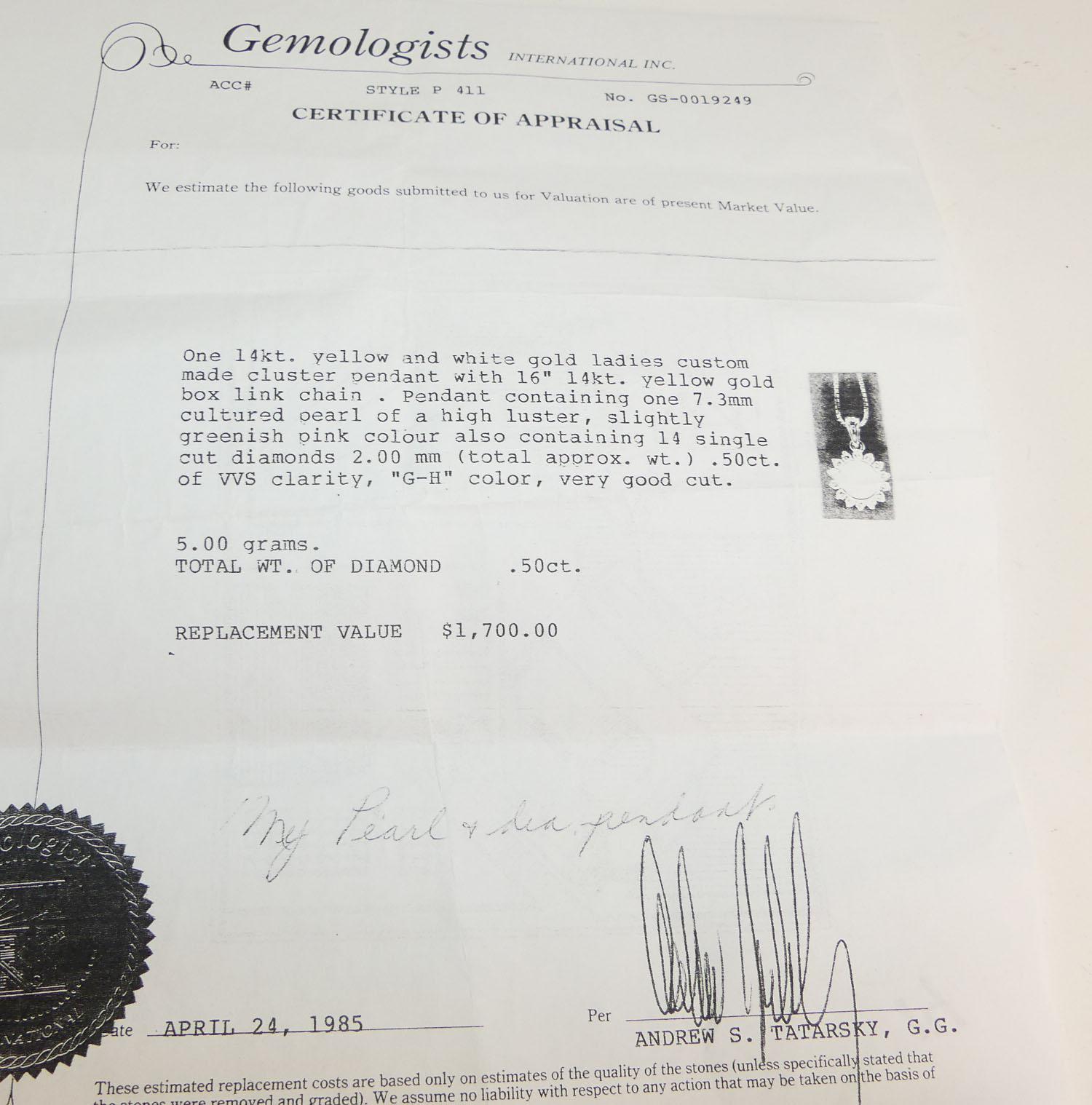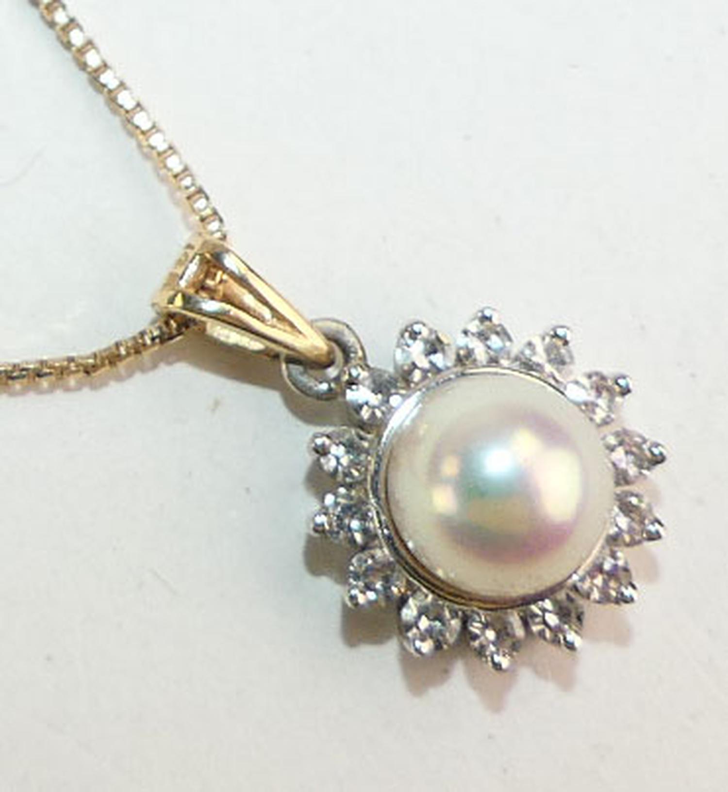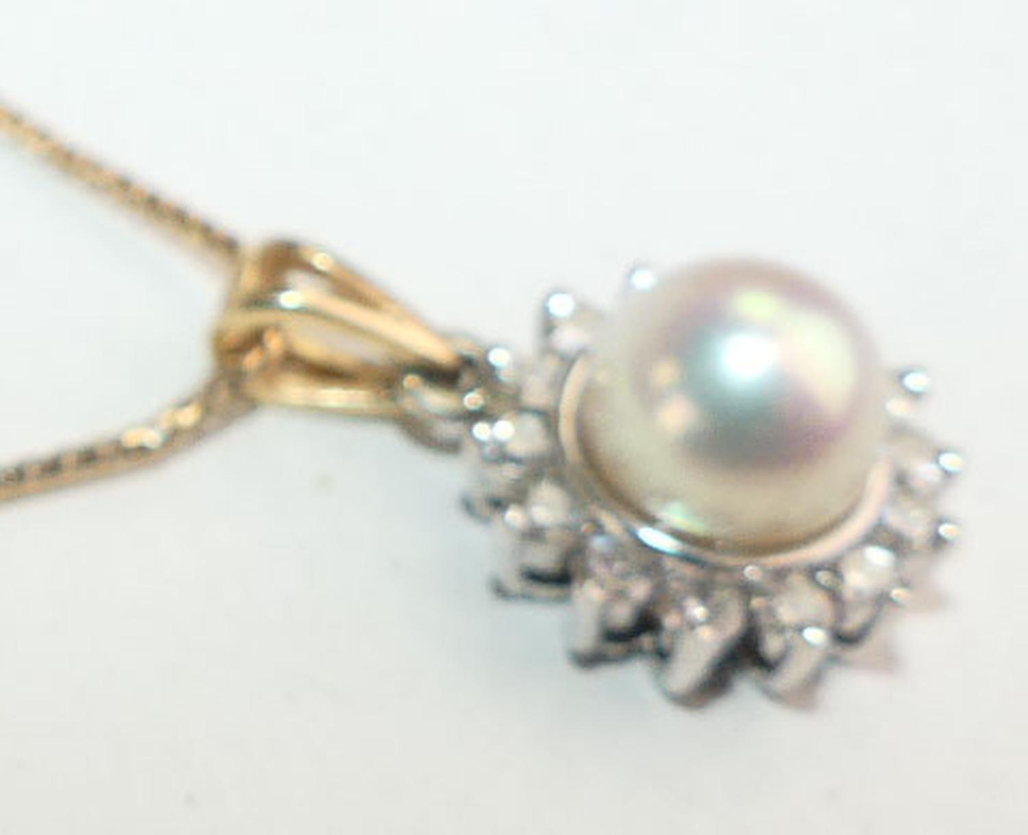 14k pearl and diamond(0.50cts) pendant necklace, length of chain 18", w/a 5.0 grams, with appraisal