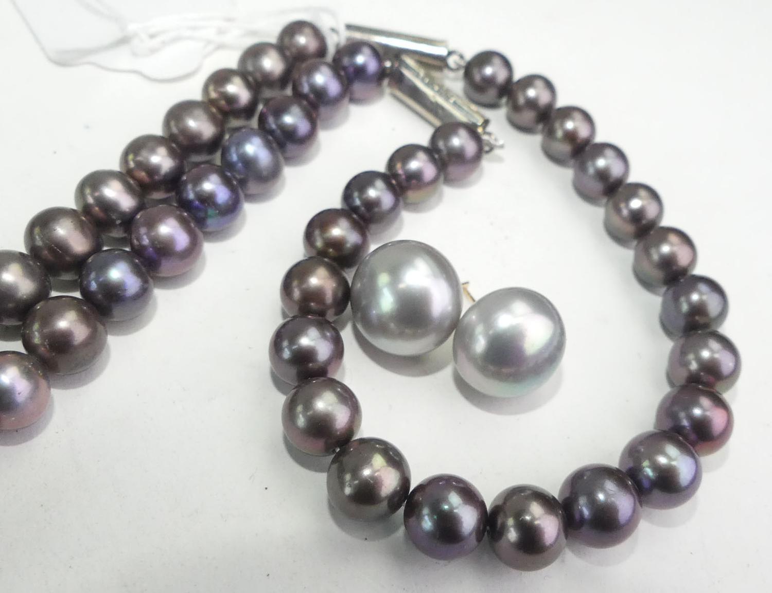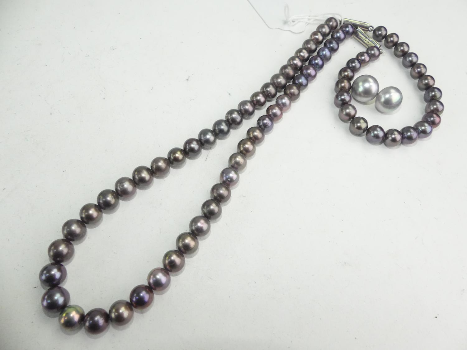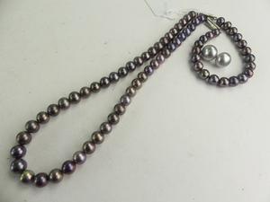 black freshwater pearl necklace and earrings, length 22"