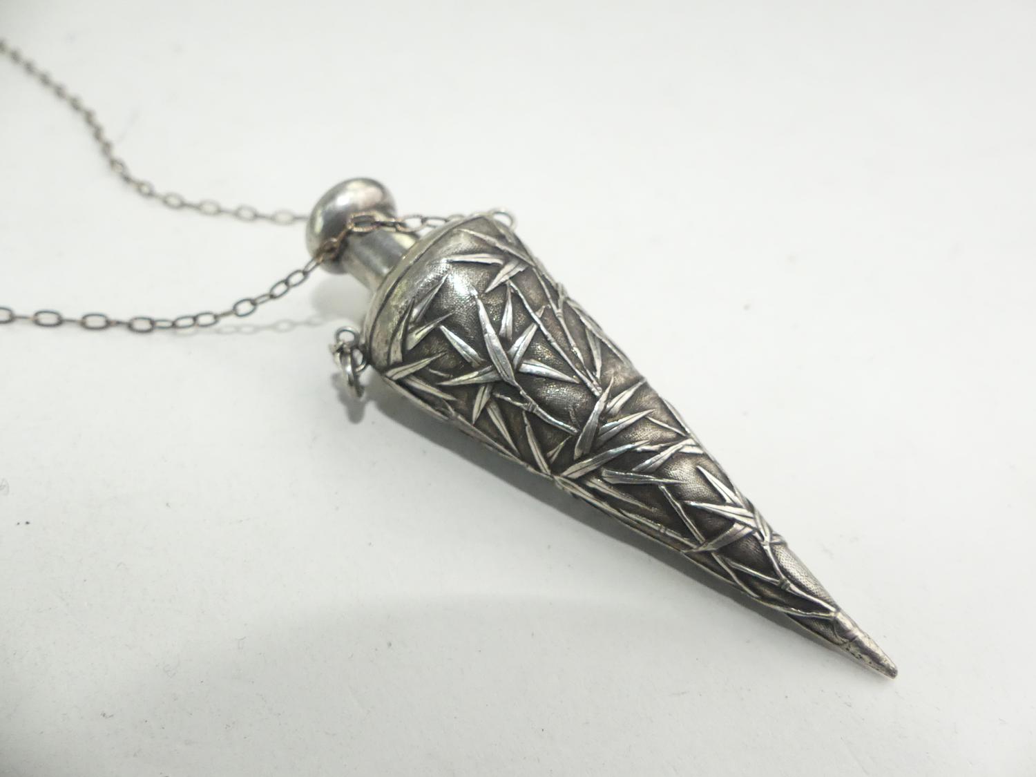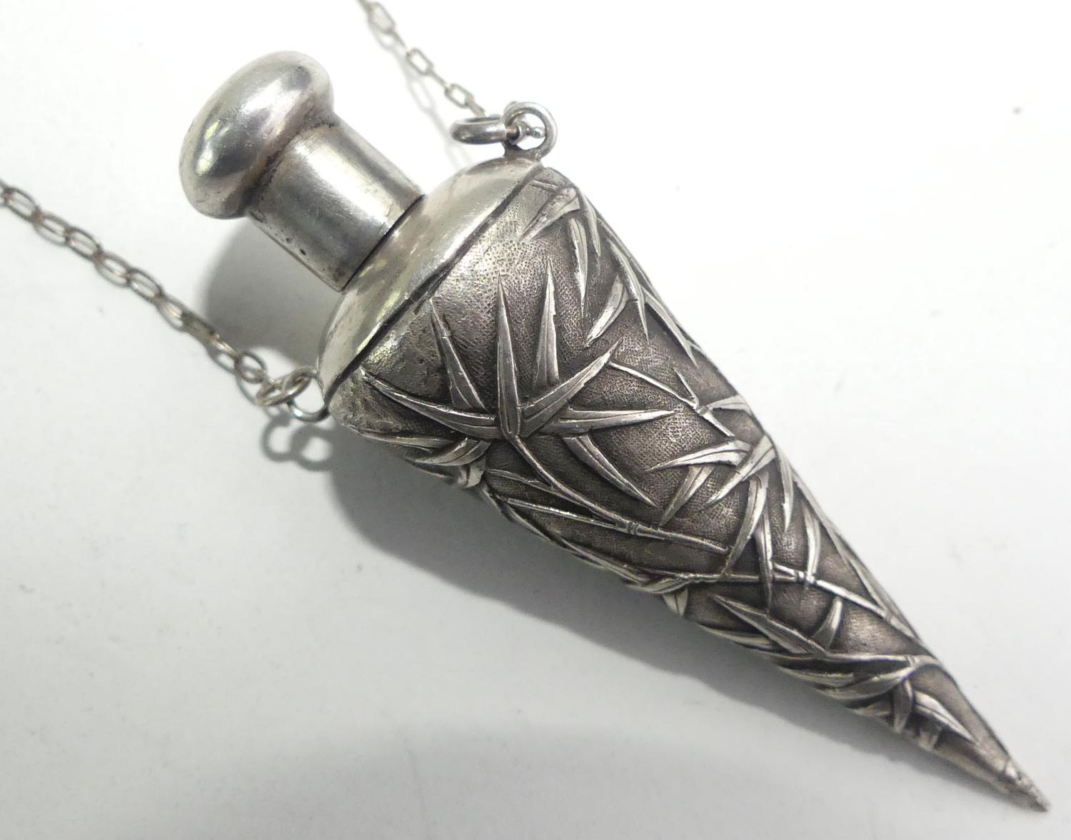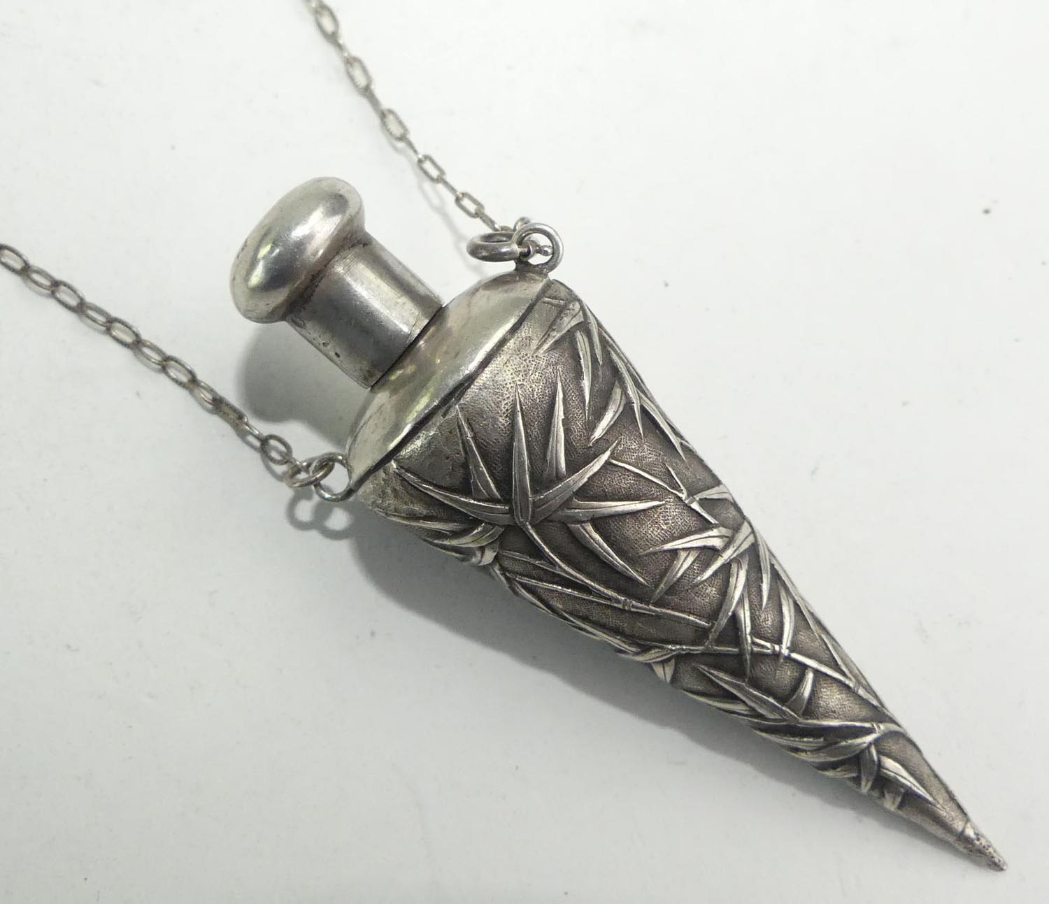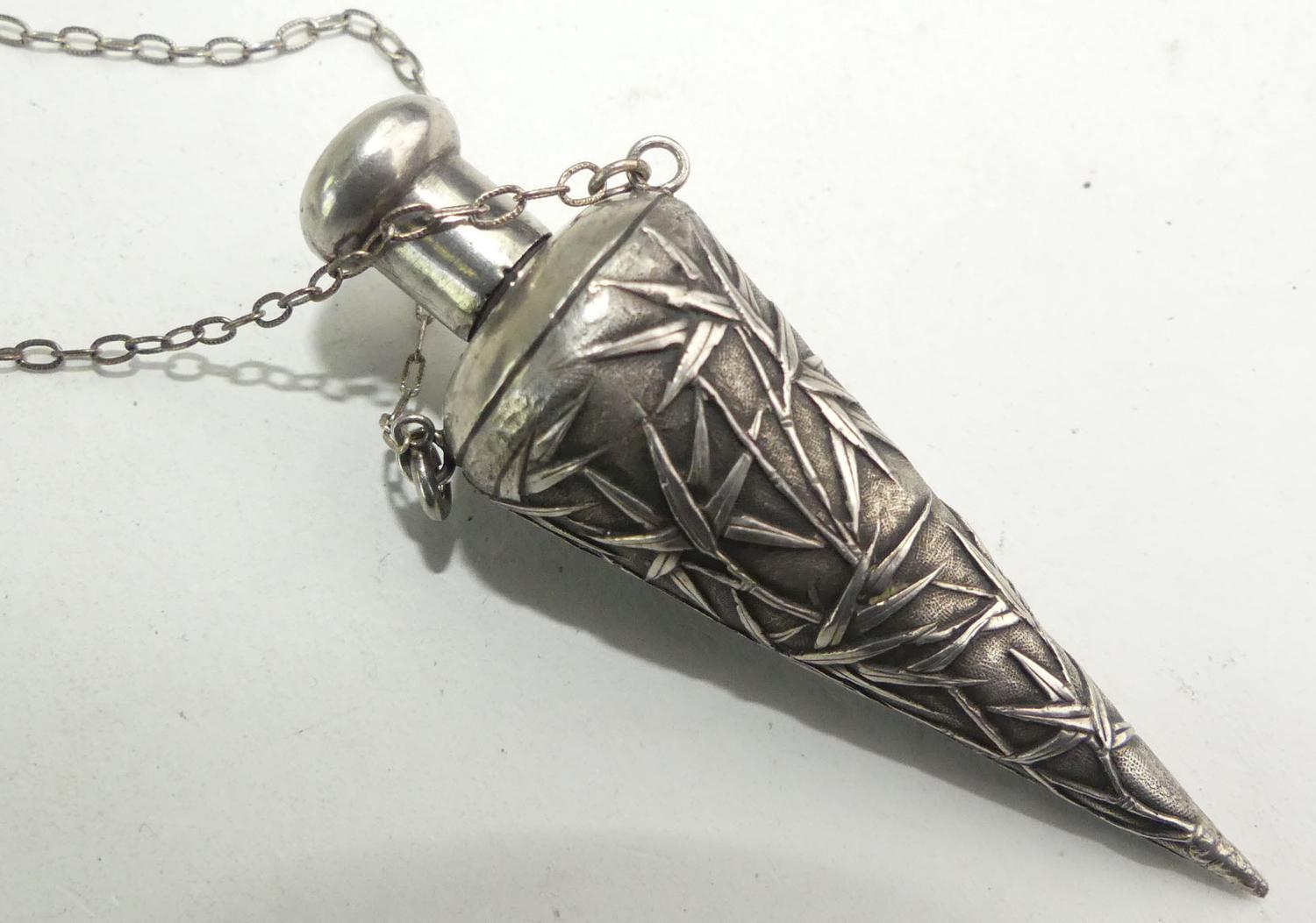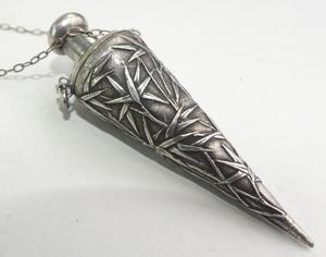 antique chinese export silver perfume vial necklace, length 20", weighing approx 16 grams
