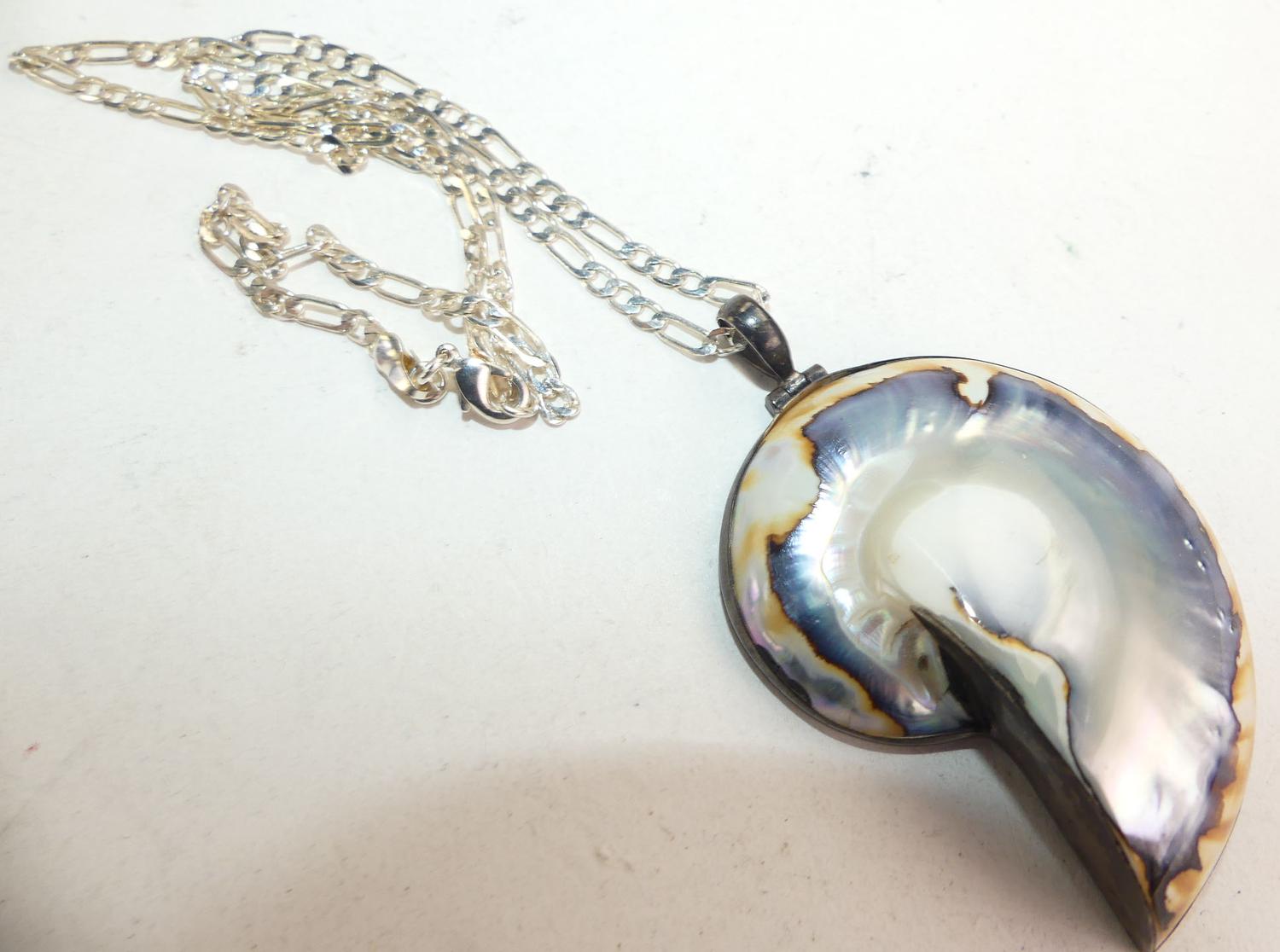 italian sterling silver curb chain with shell pendant