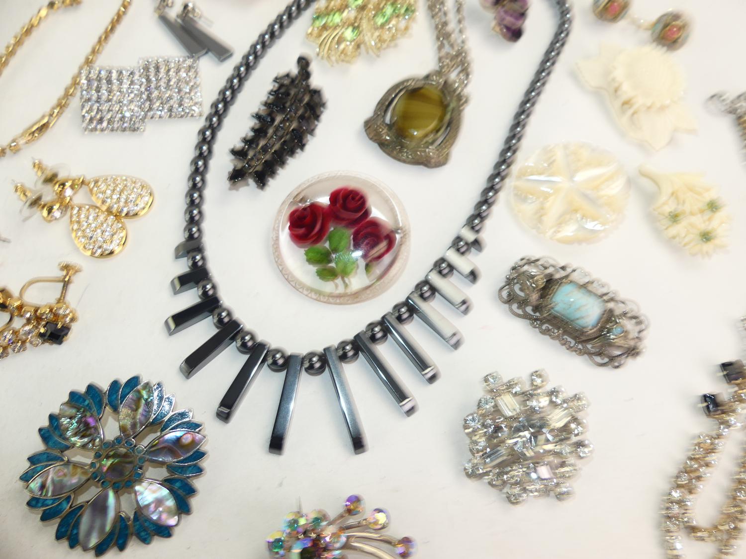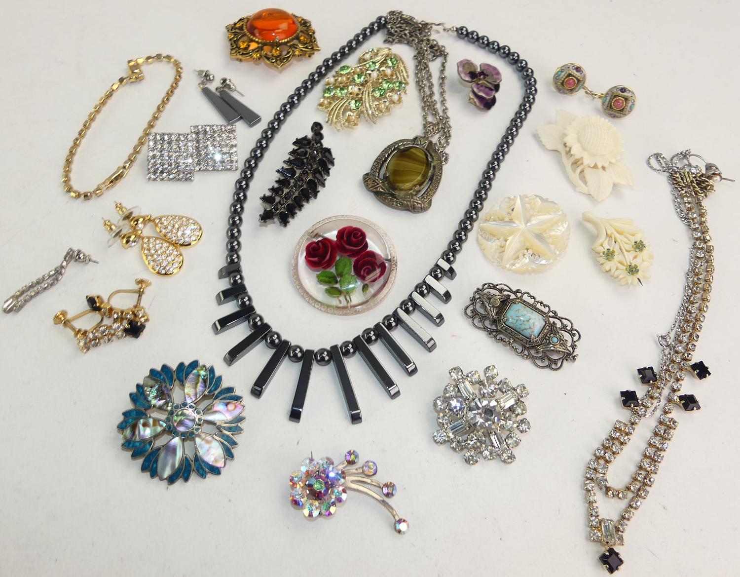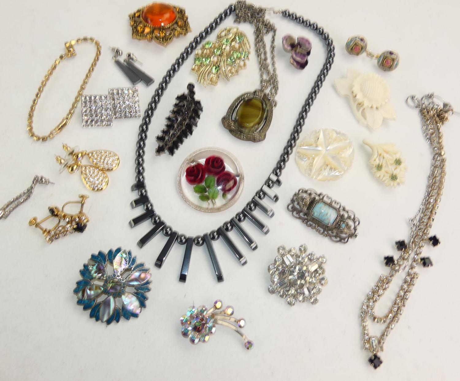 lot of vintage costume, including hematite necklace, bone items