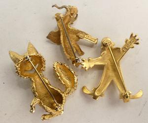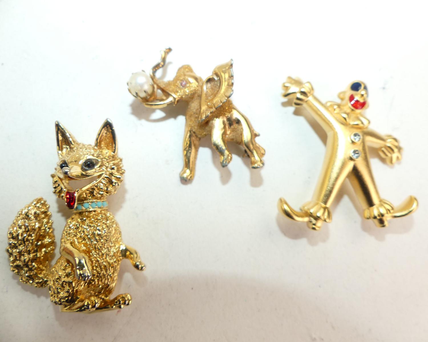 signed kramer elephant pin with two other figural brooches