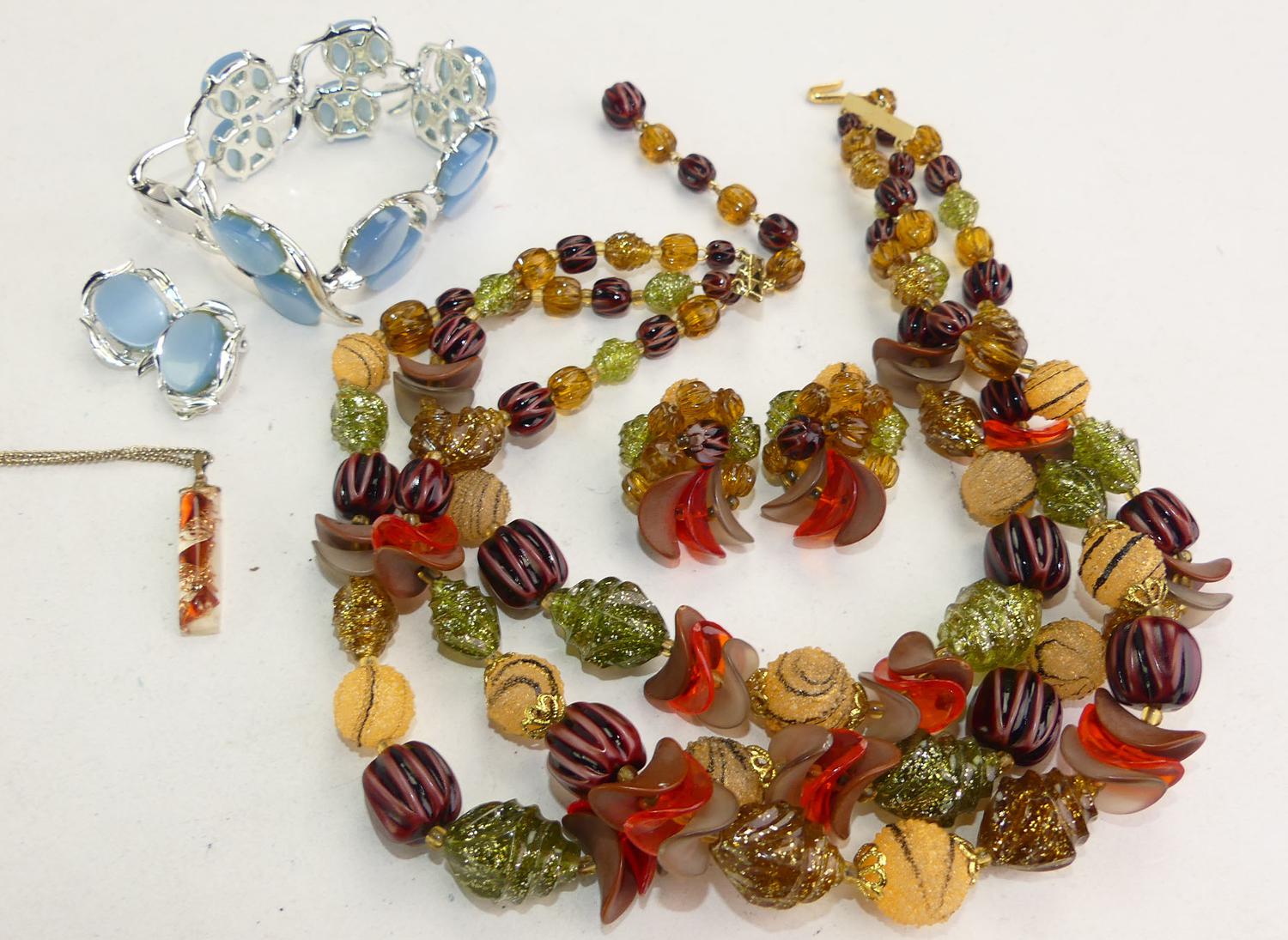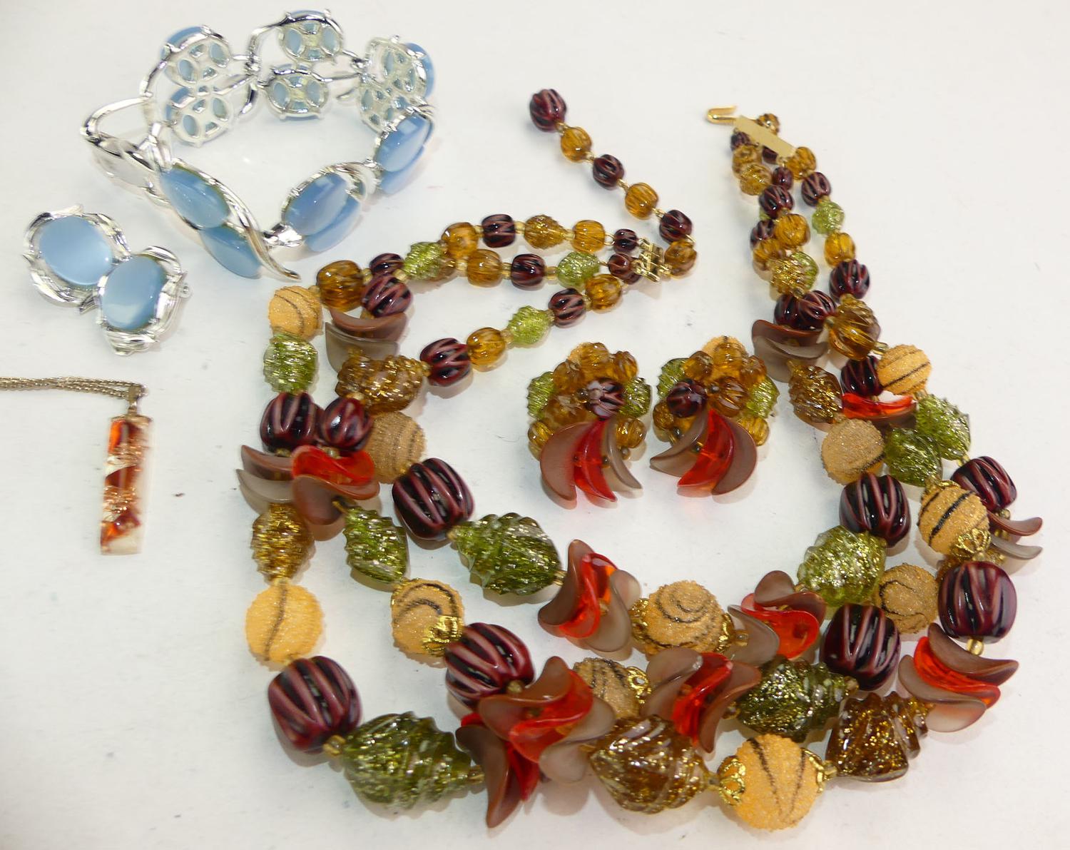 coro thermoset plastic bracelet and earrings, with west germany lucite necklace