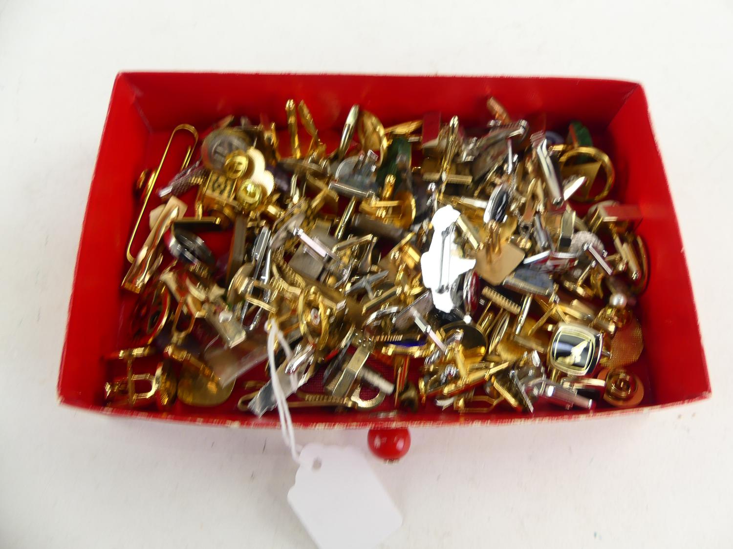 large lot of misc gents cufflinks, including amethyst, gold plated, swank, tie bars