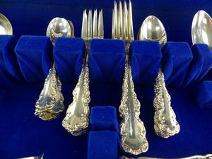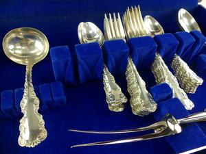 1331 grams of weighable silver plus 8 handled knives and a 2pc handled carving set