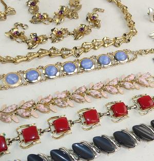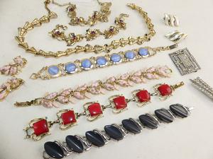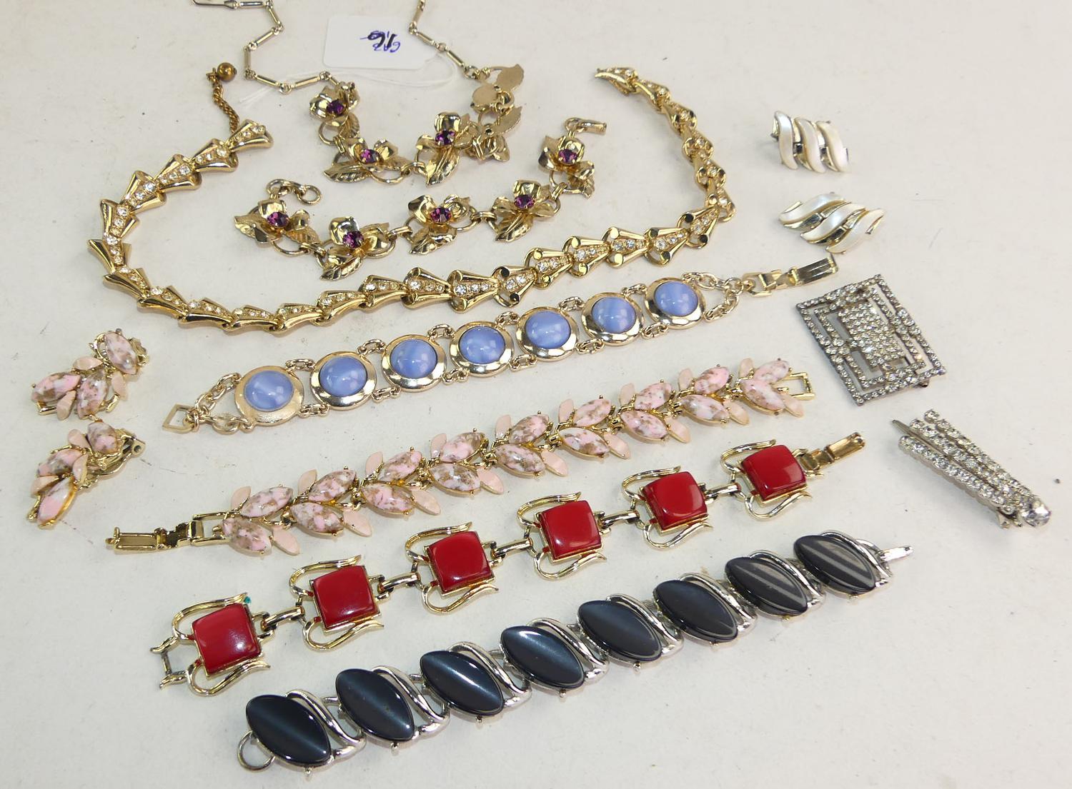 lot of thermoset plastic 1950s jewelery and rhinestone items