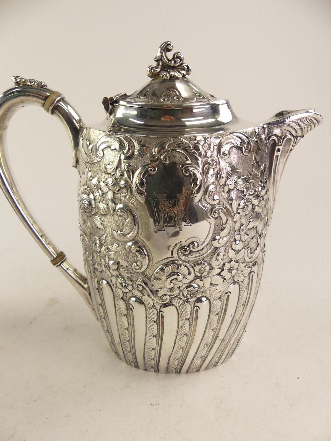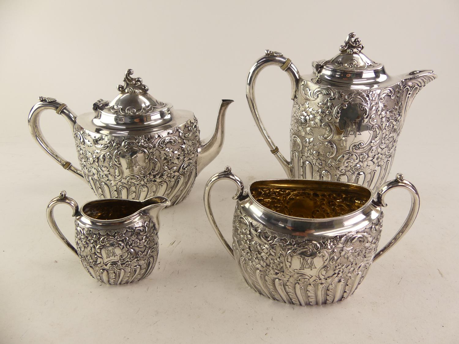 four piece silver plate hand chased tea and coffee service