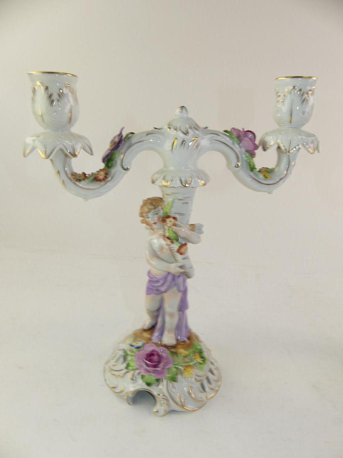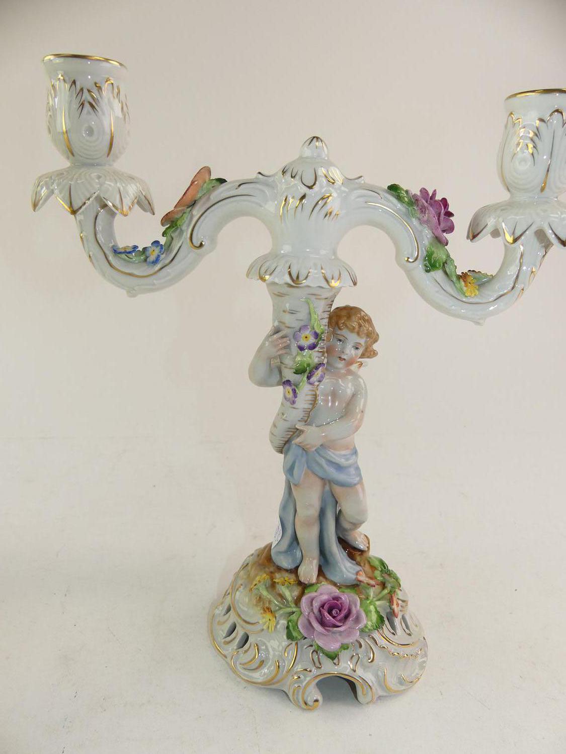 pair of dresden porcelain candelabra, ht. 11 1/2"
