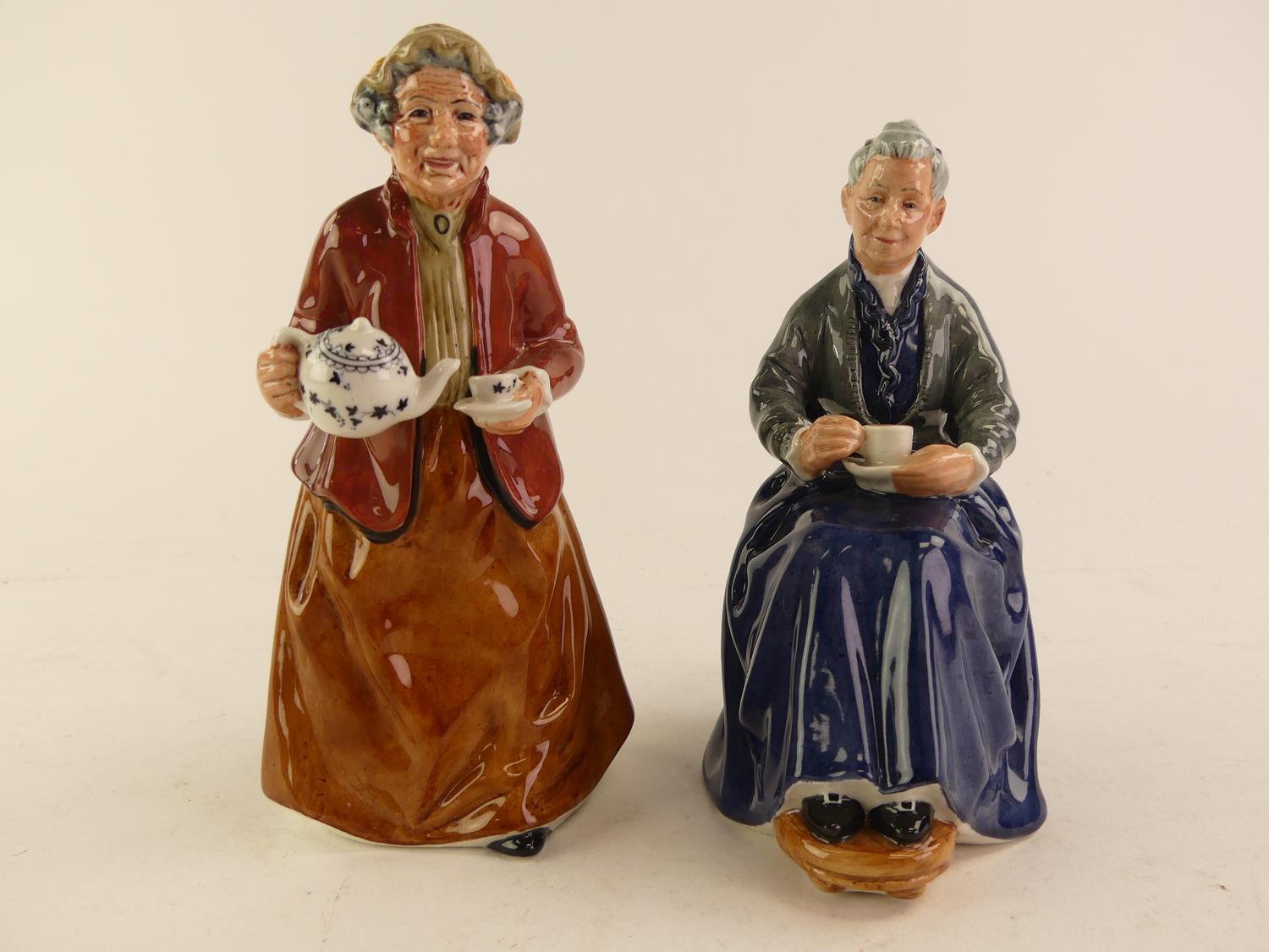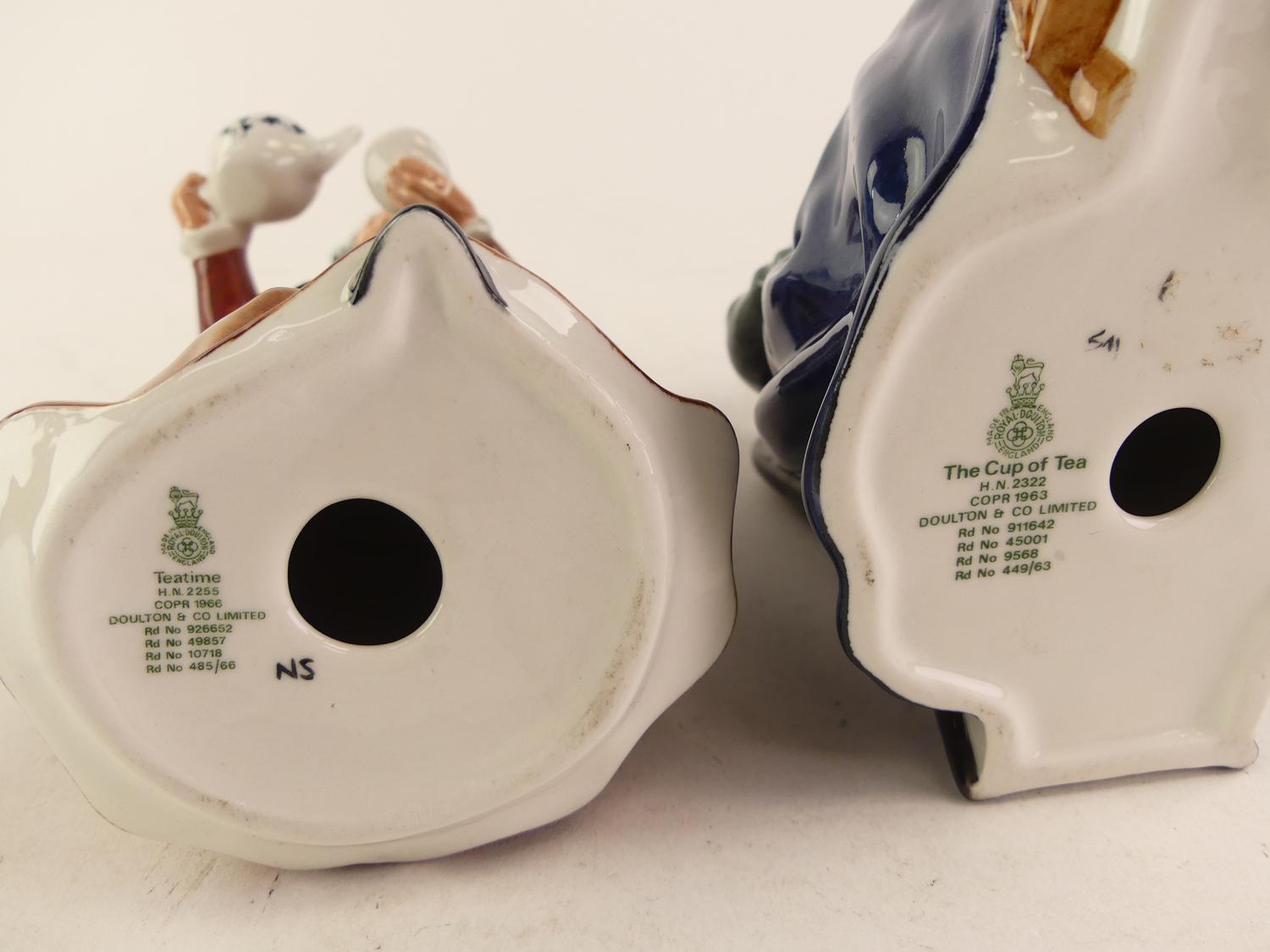 2 royal doulton figurines, "the cup of tea", hn 2322, "teatime", hn 2369, ht 7" and smaller