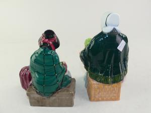 2 royal doulton figurines "rag doll seller", hn 2944, "silks and ribbons", hn 2017, height 7" and smaller