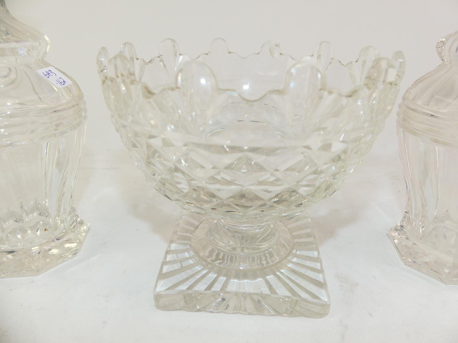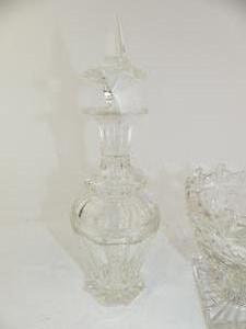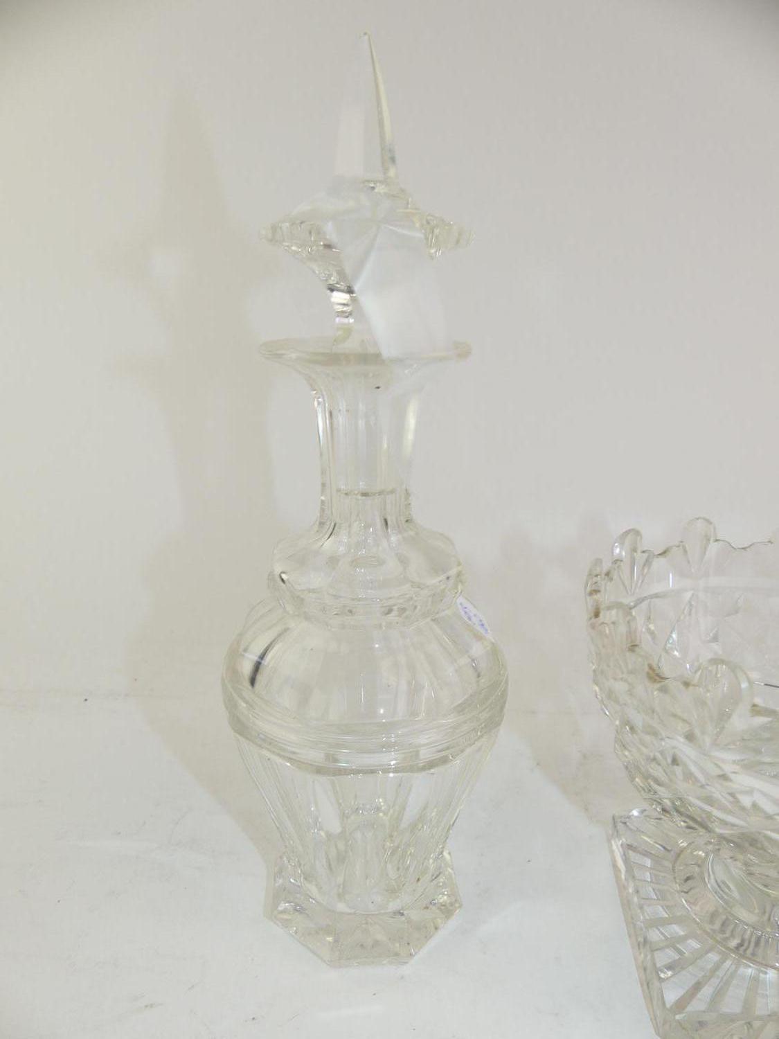 pair of early 19th century cut crystal vinegrette bottles, ht 10" with a waste bowl