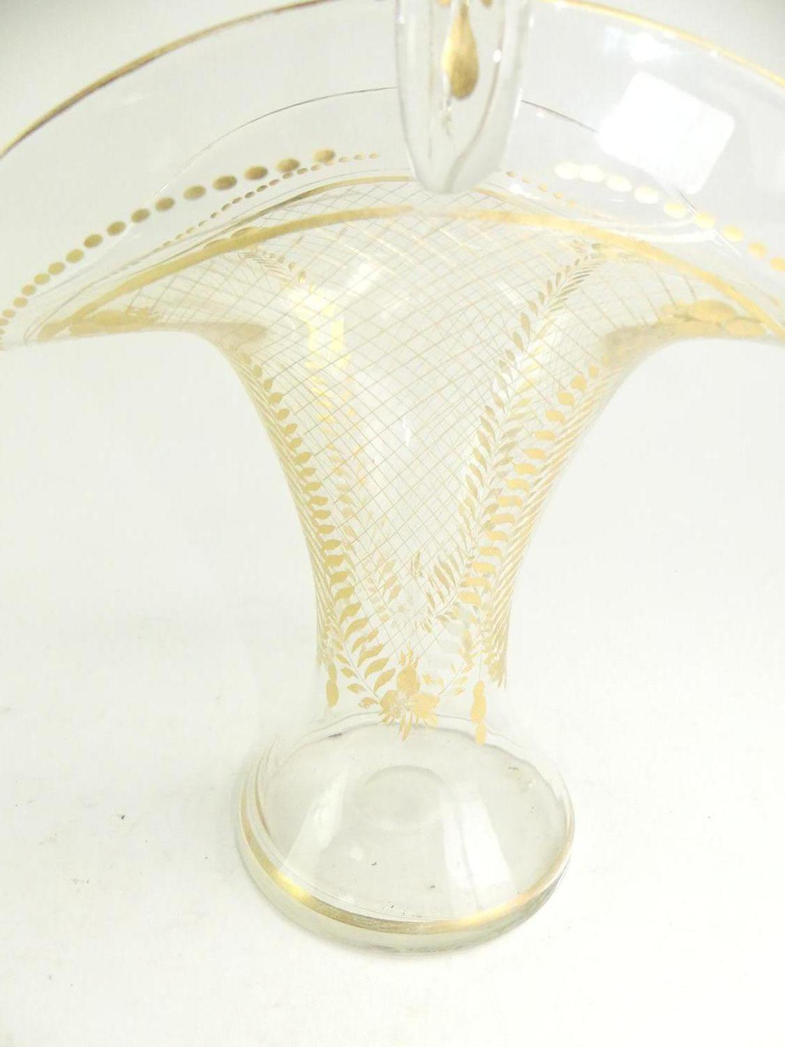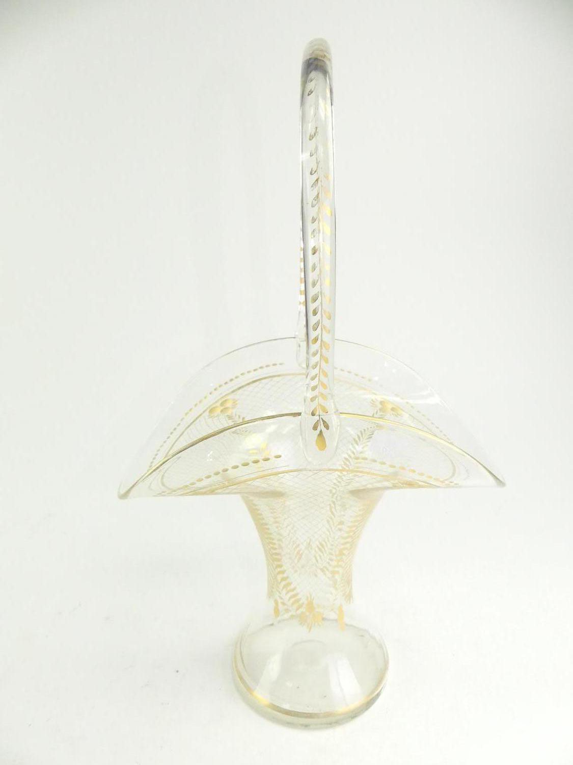 antique gilt decorated glass bridal basket, ht 17"