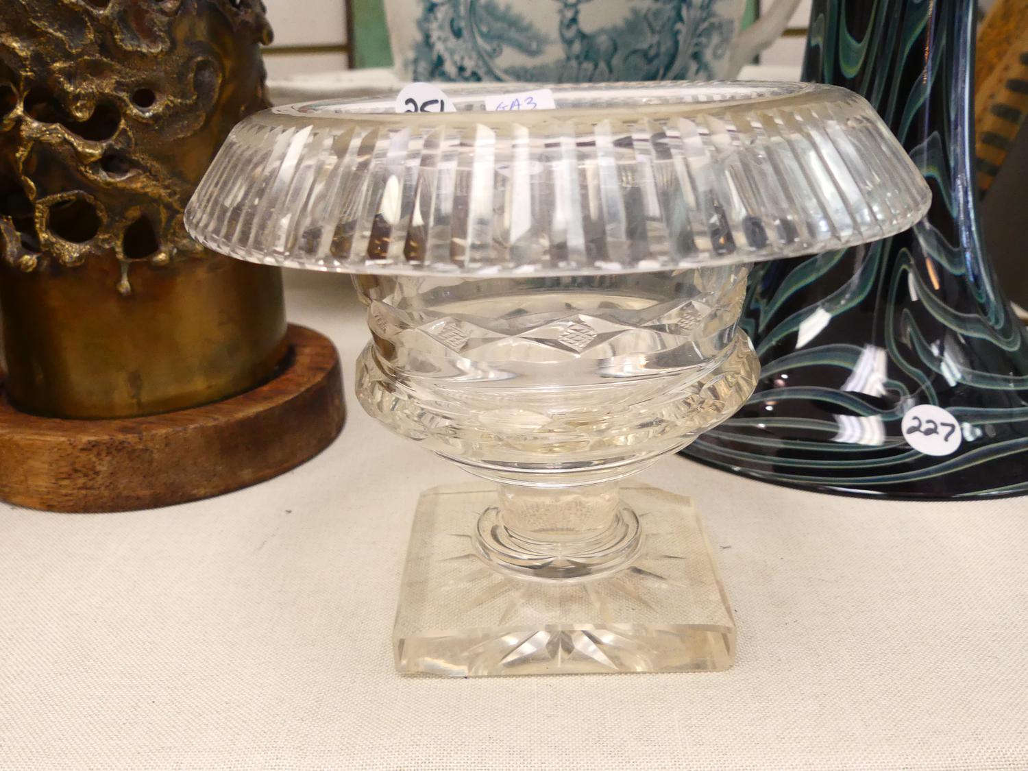 anglo irish cut glass pedestal bowl, 5" x 6 1/2"