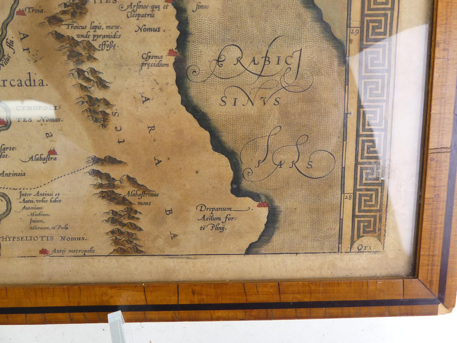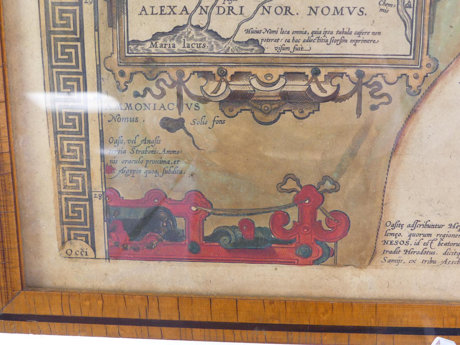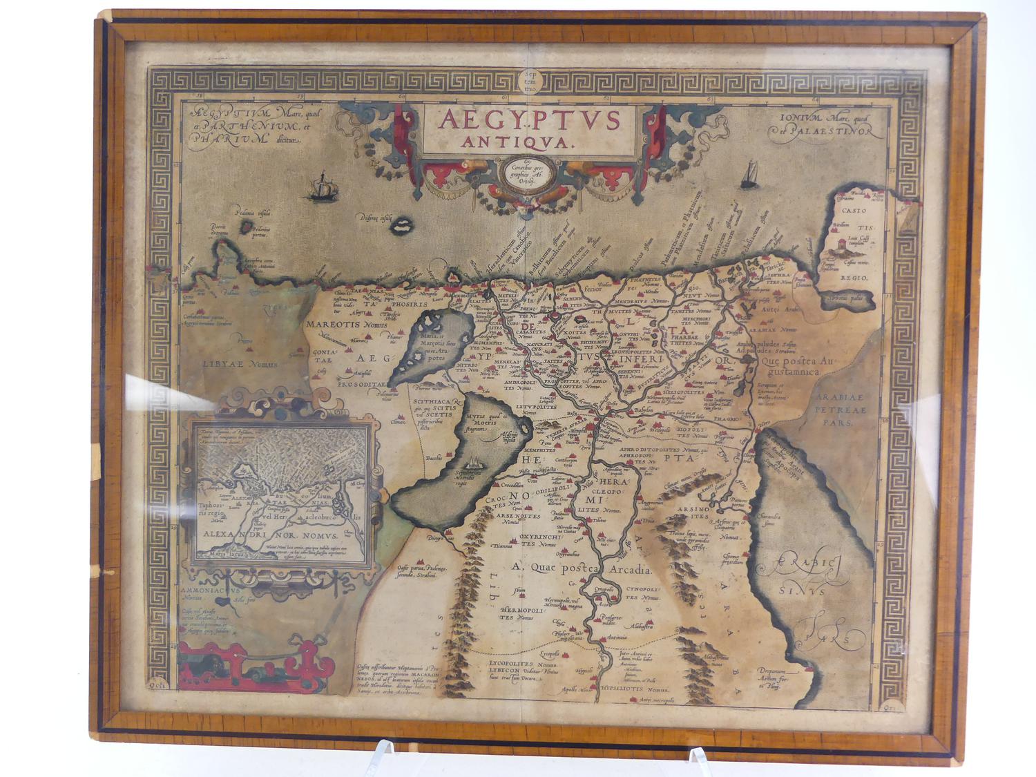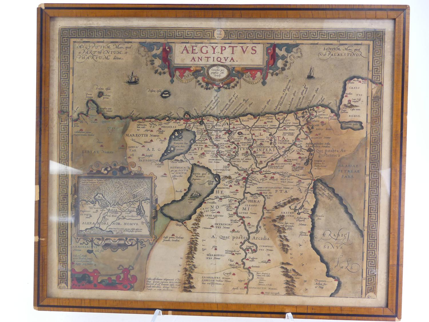 framed colour map of egypt after abraham ortelius, overall 18 3/4" x 21 1/2"