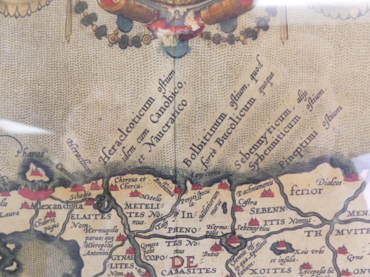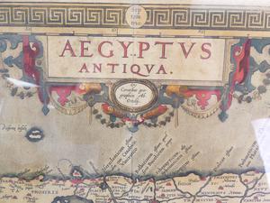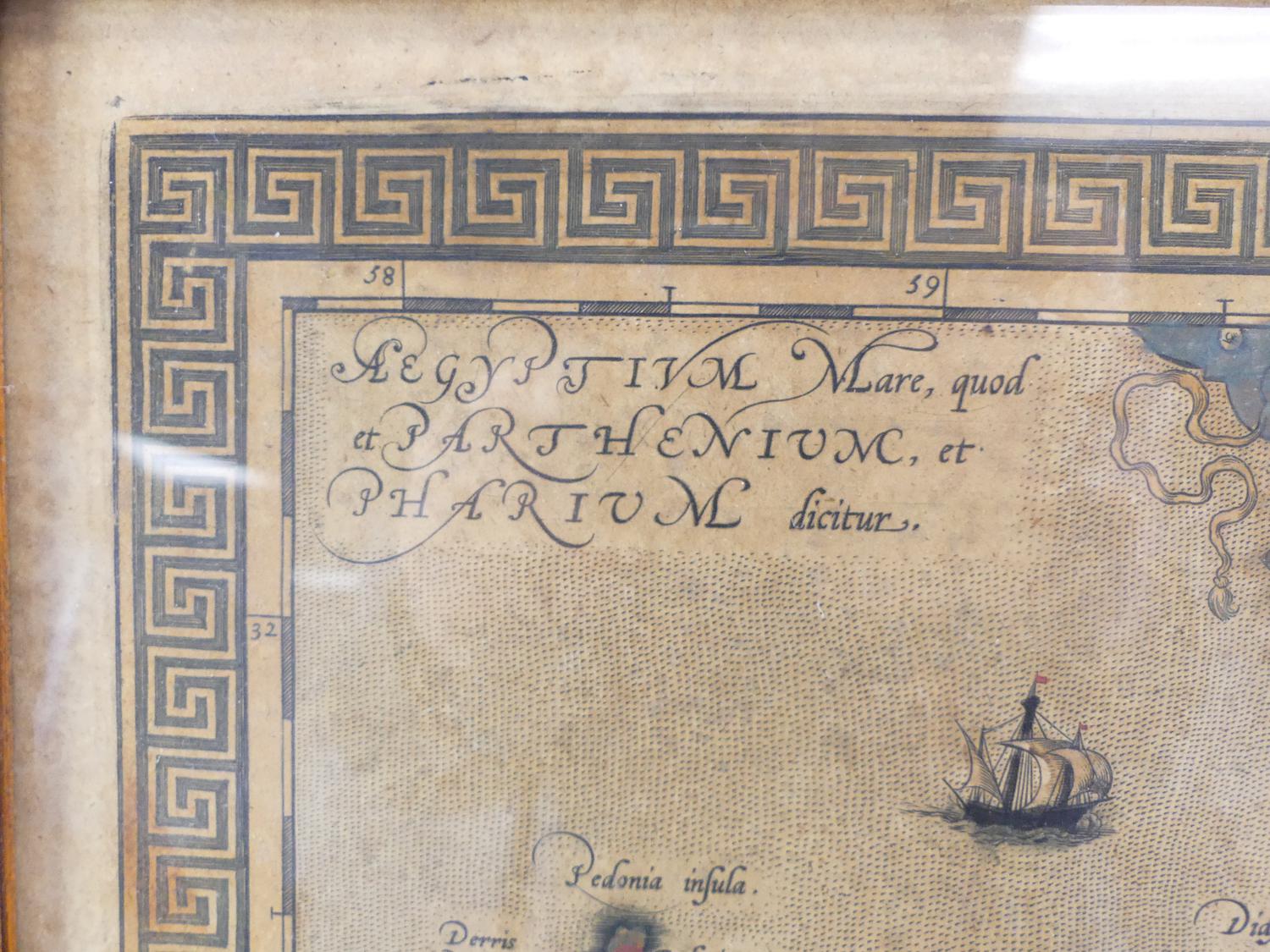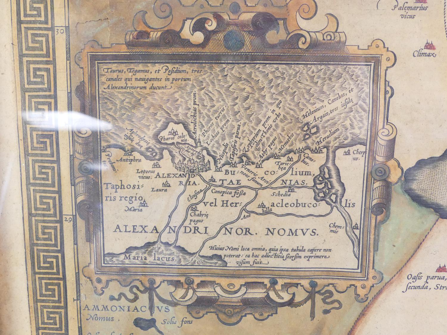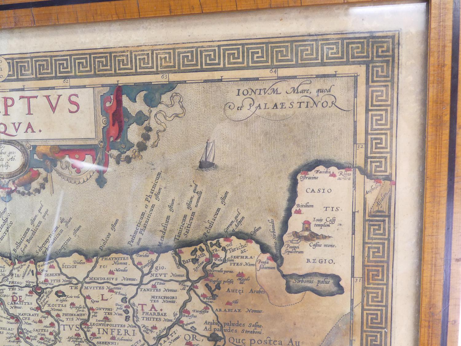 framed colour map of egypt after abraham ortelius, overall 18 3/4" x 21 1/2"