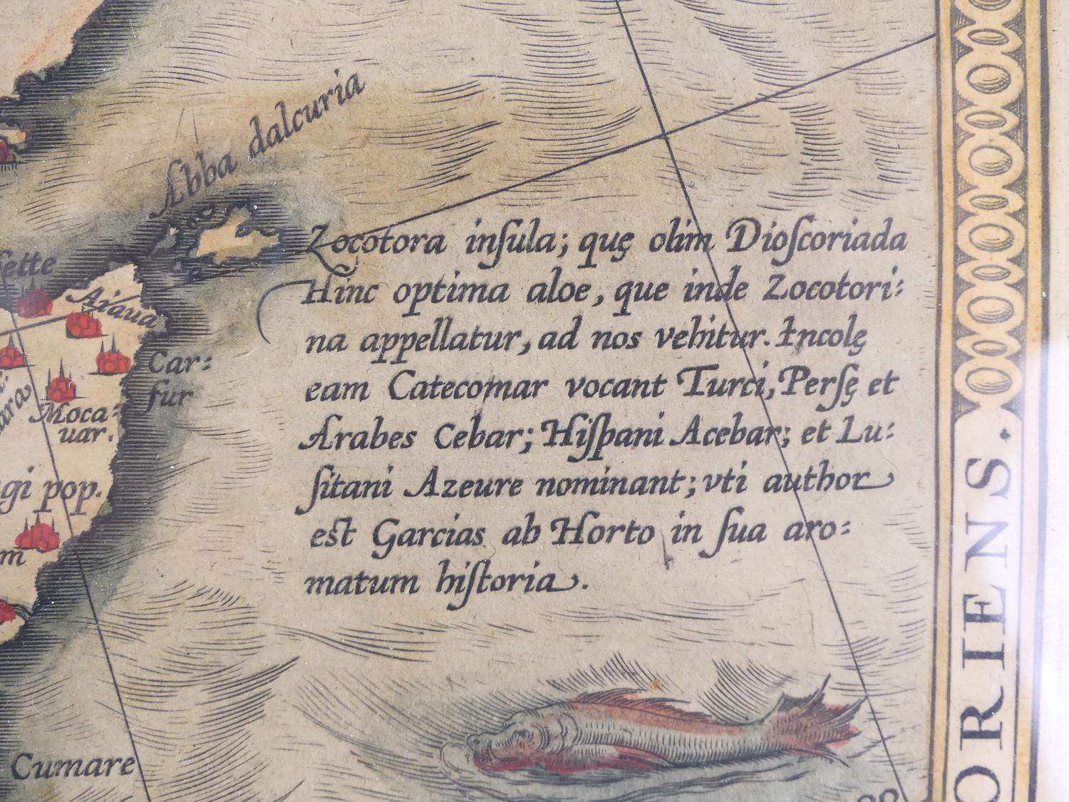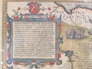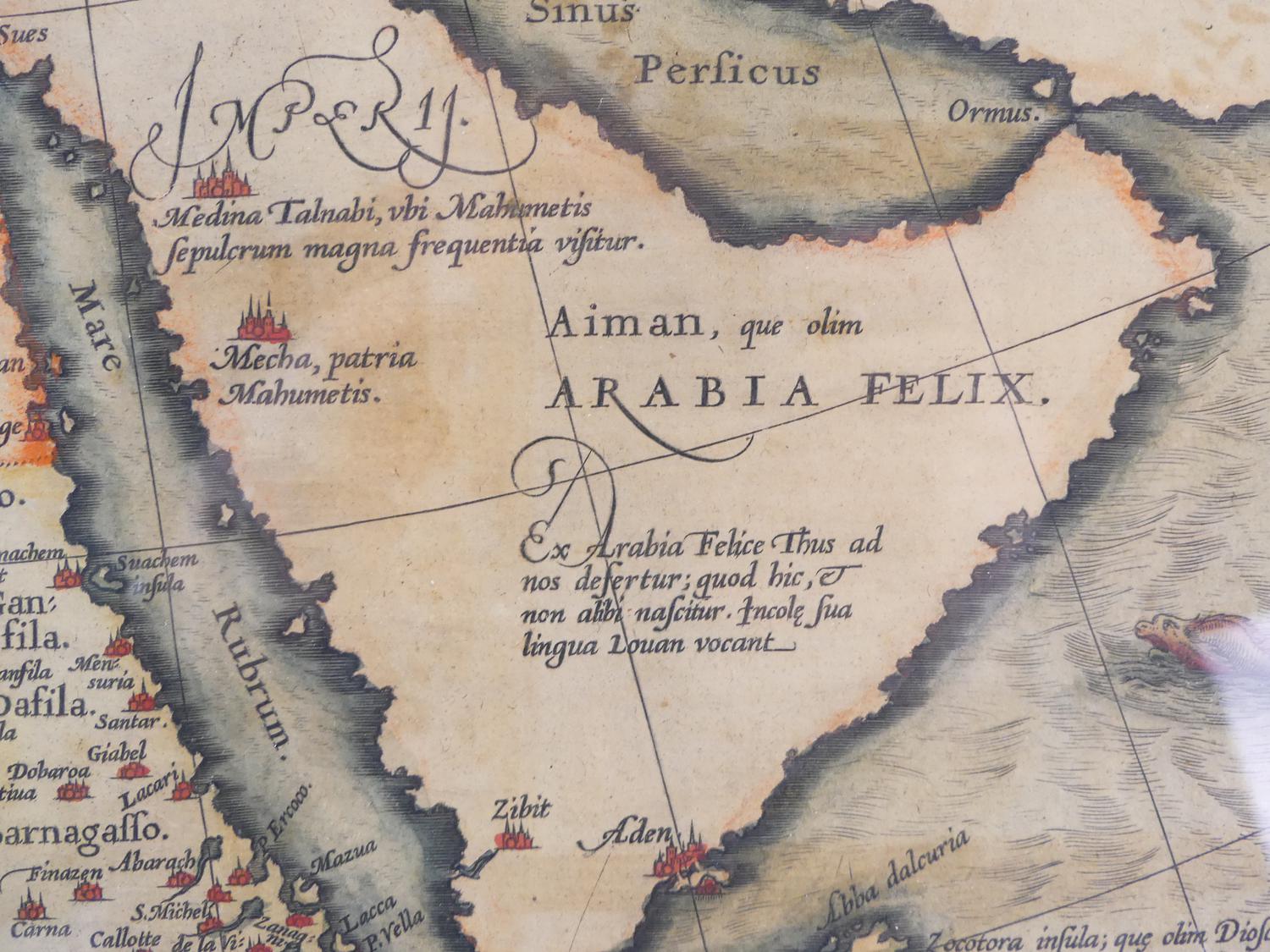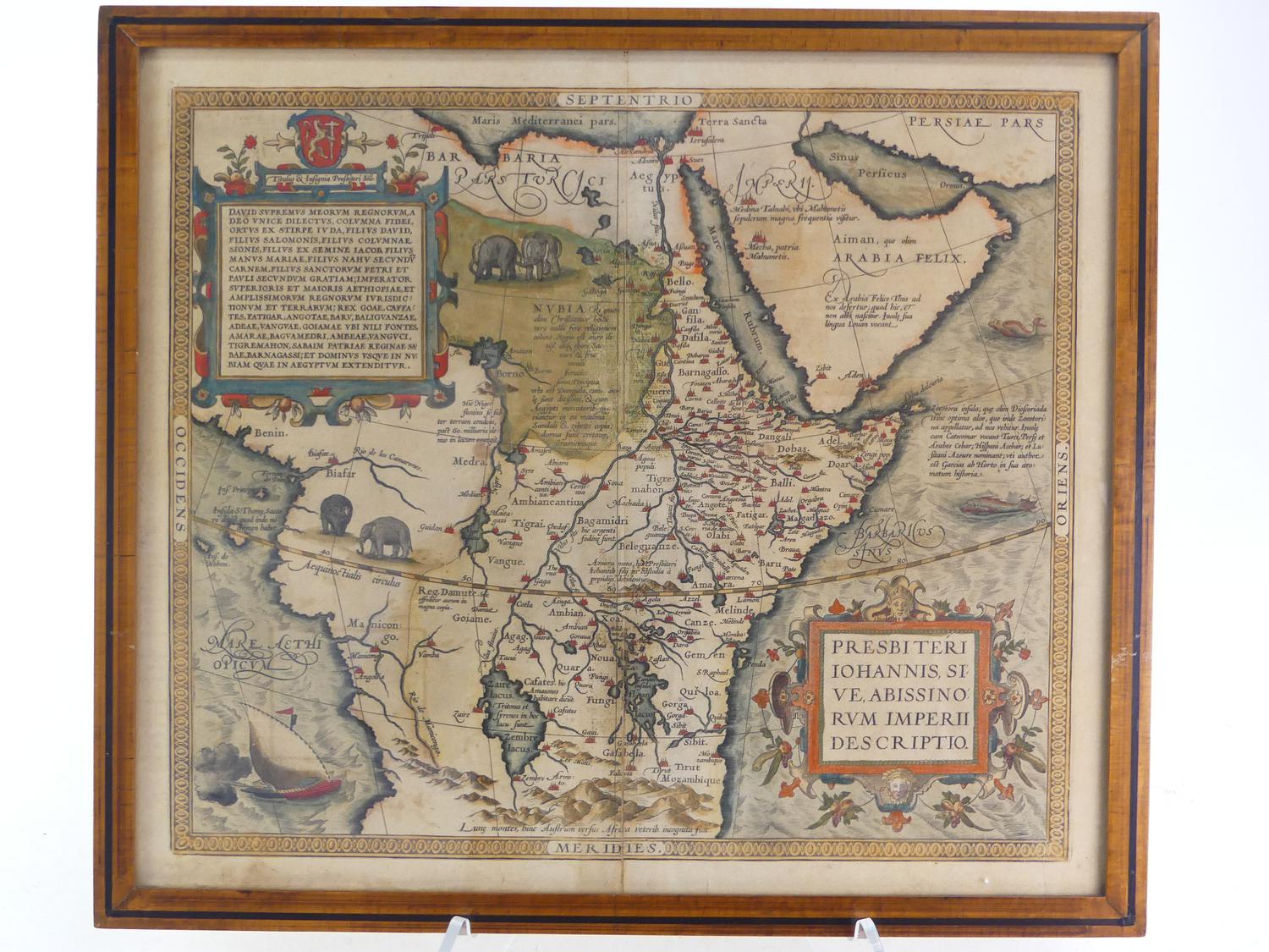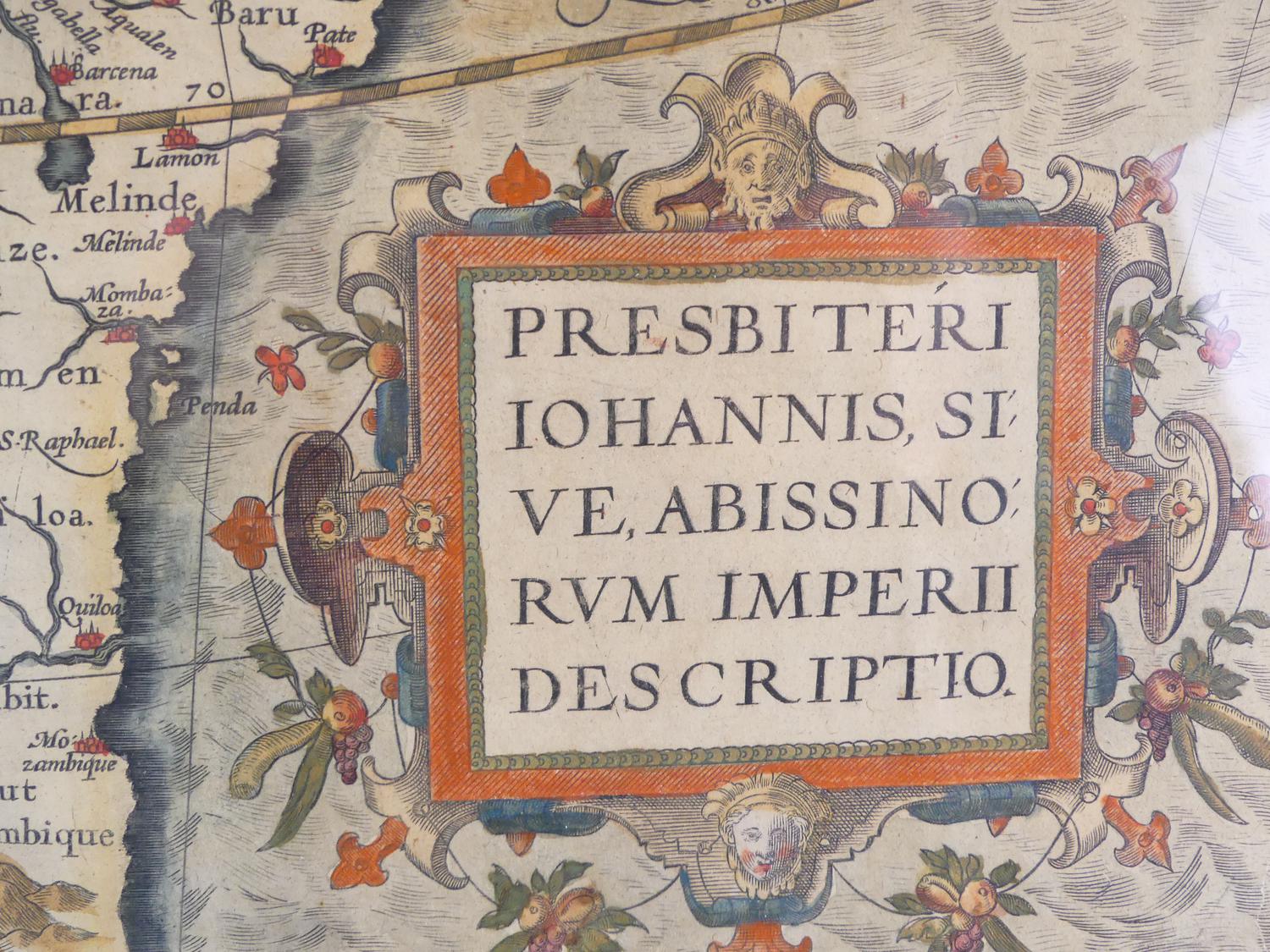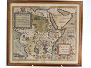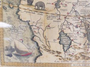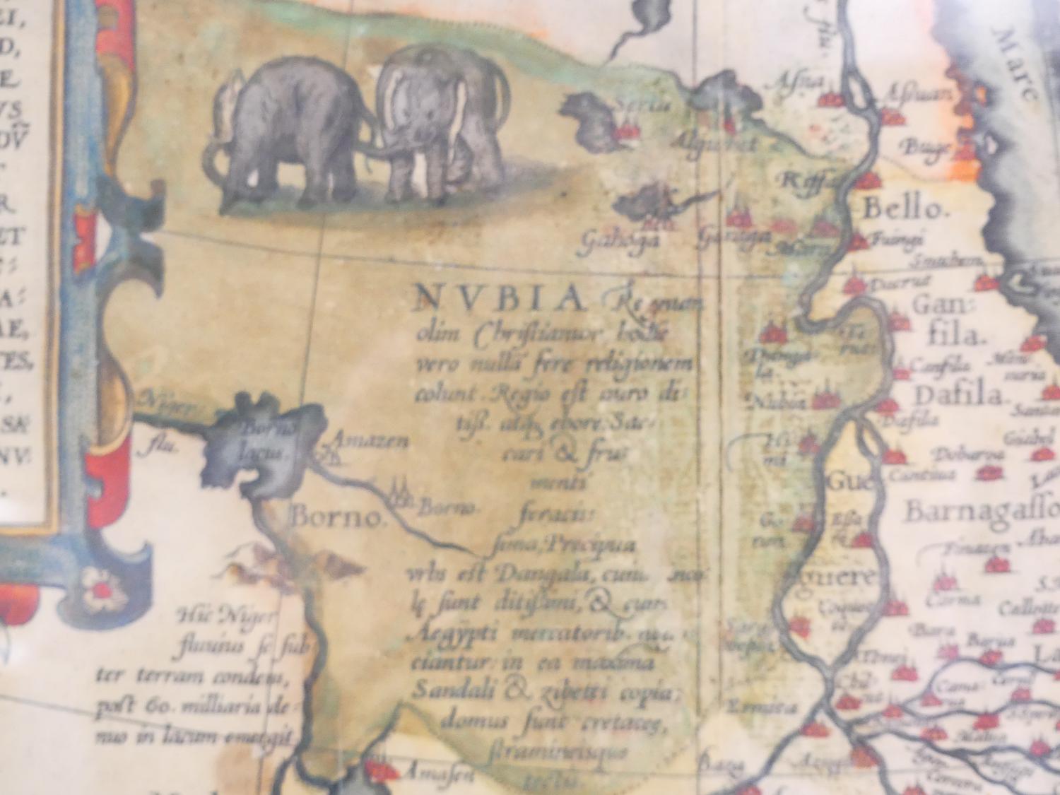 framed colour map of africa after abraham ortelius, overall 17 1/2" x 20"
