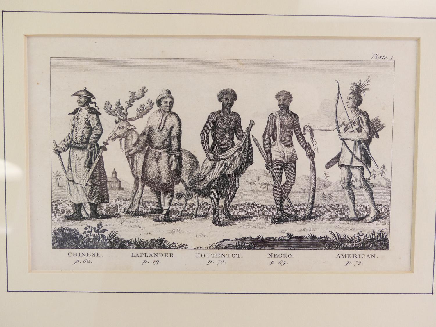 inlaid framed 19th century ethnology print, overall 9" x 12"