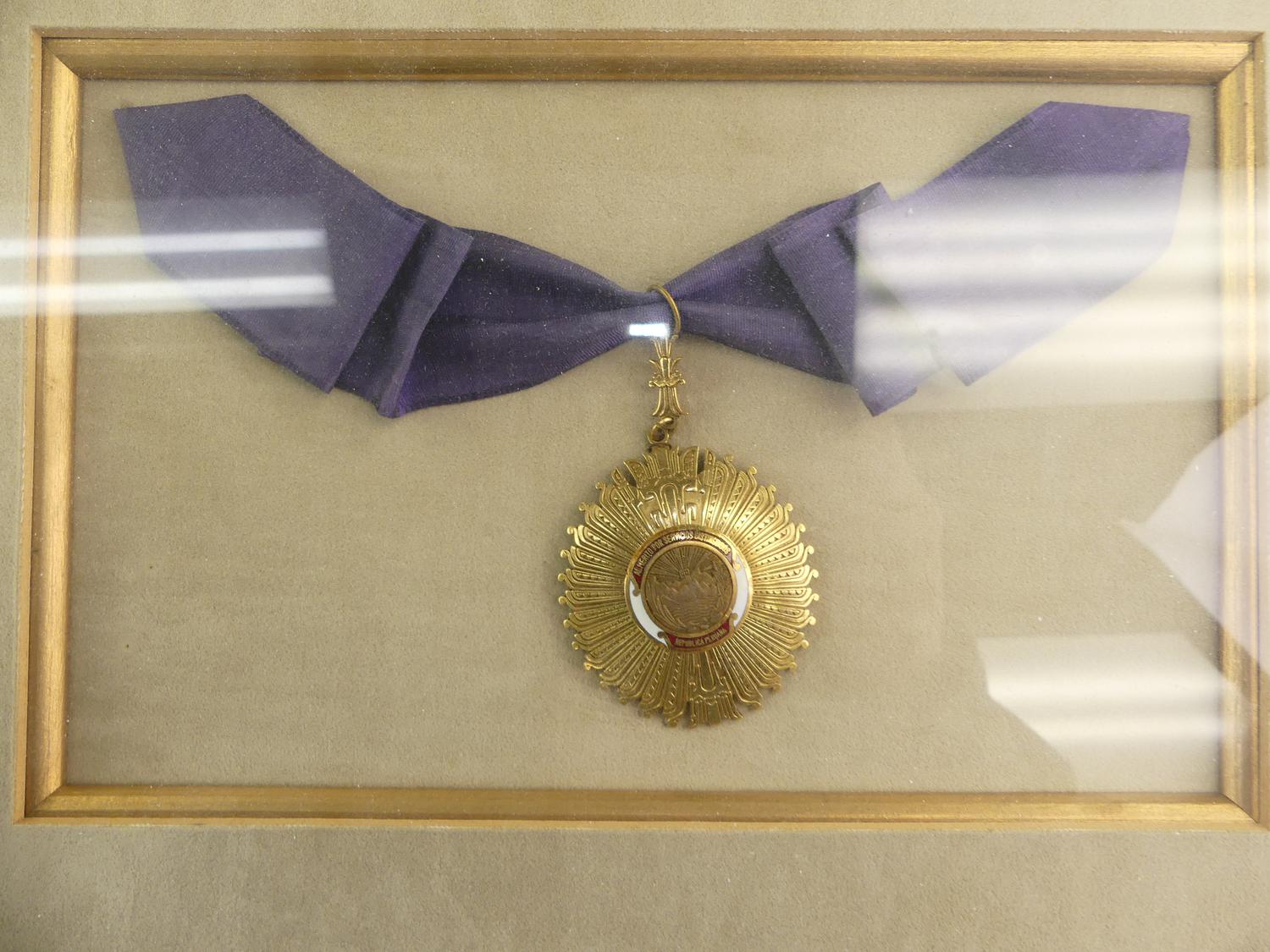 framed panama presidential medal