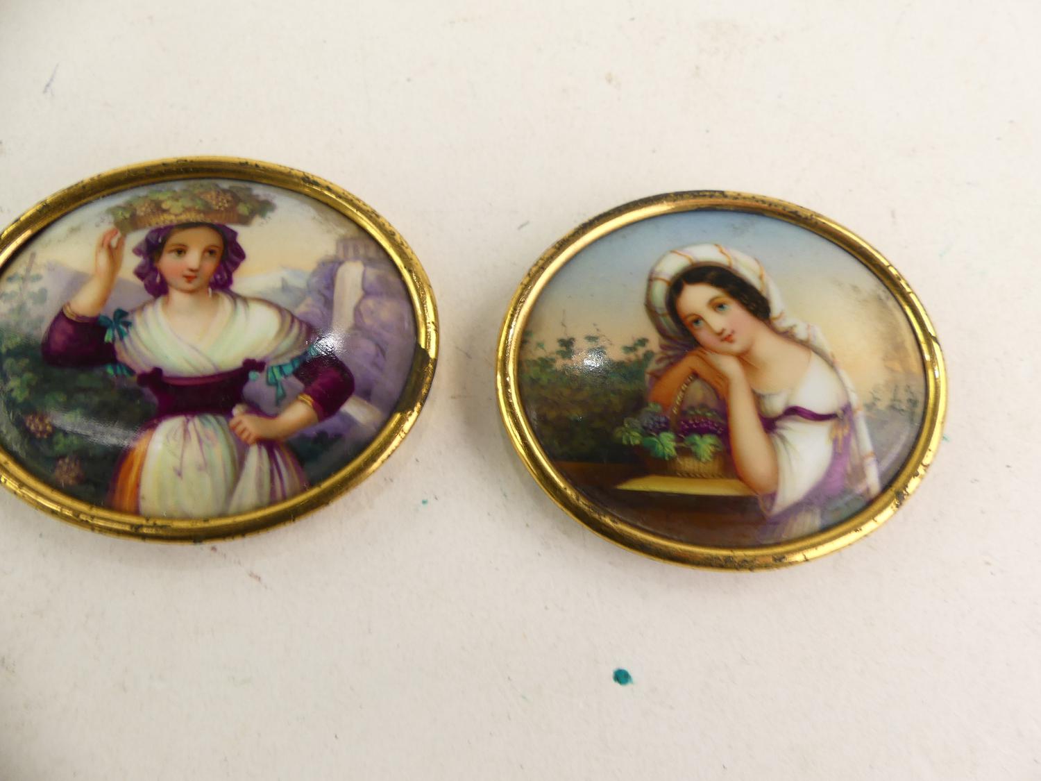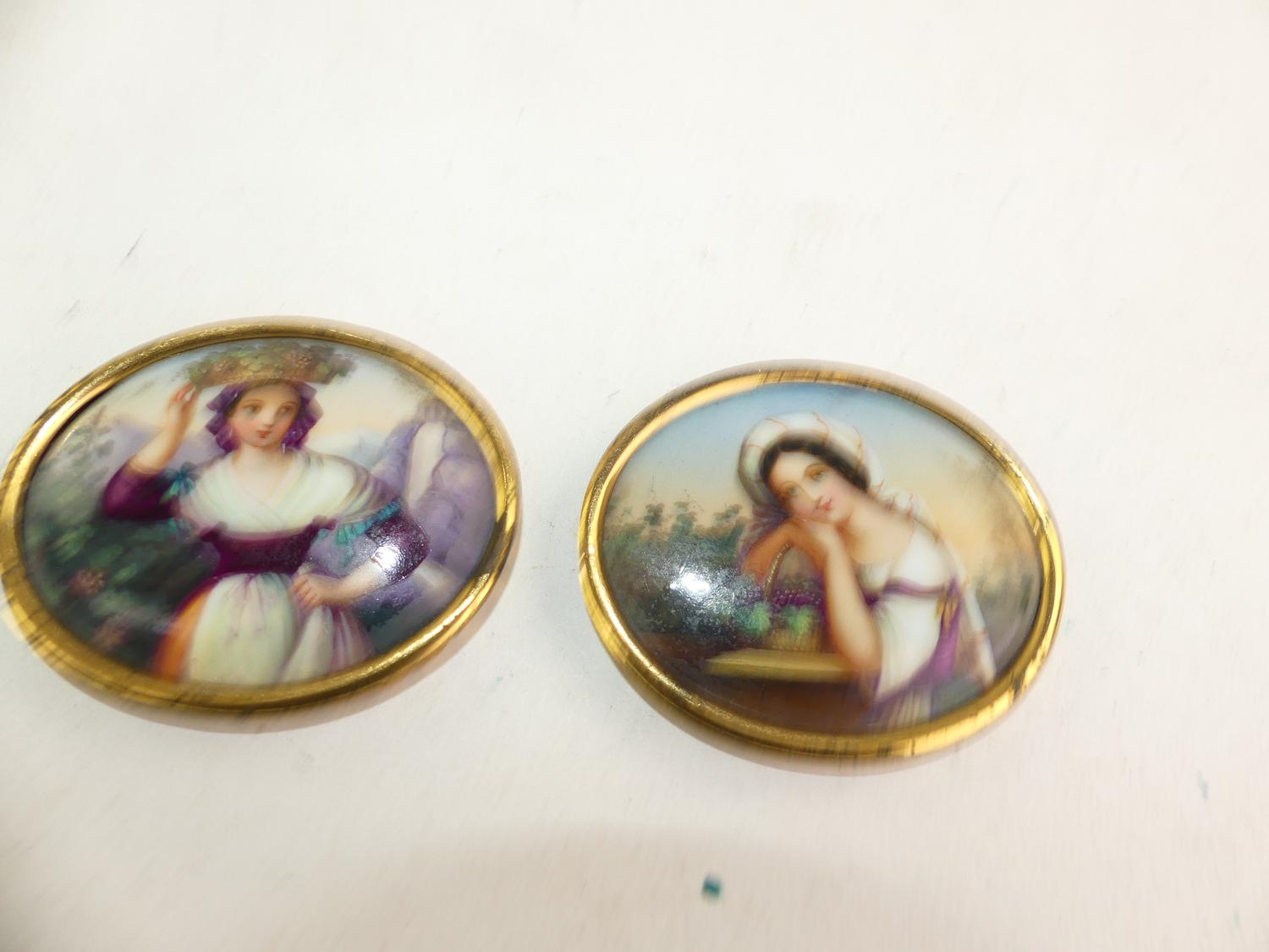 pair of 19th century portraits on porcelain, 2 1/4" x 1 3/4"