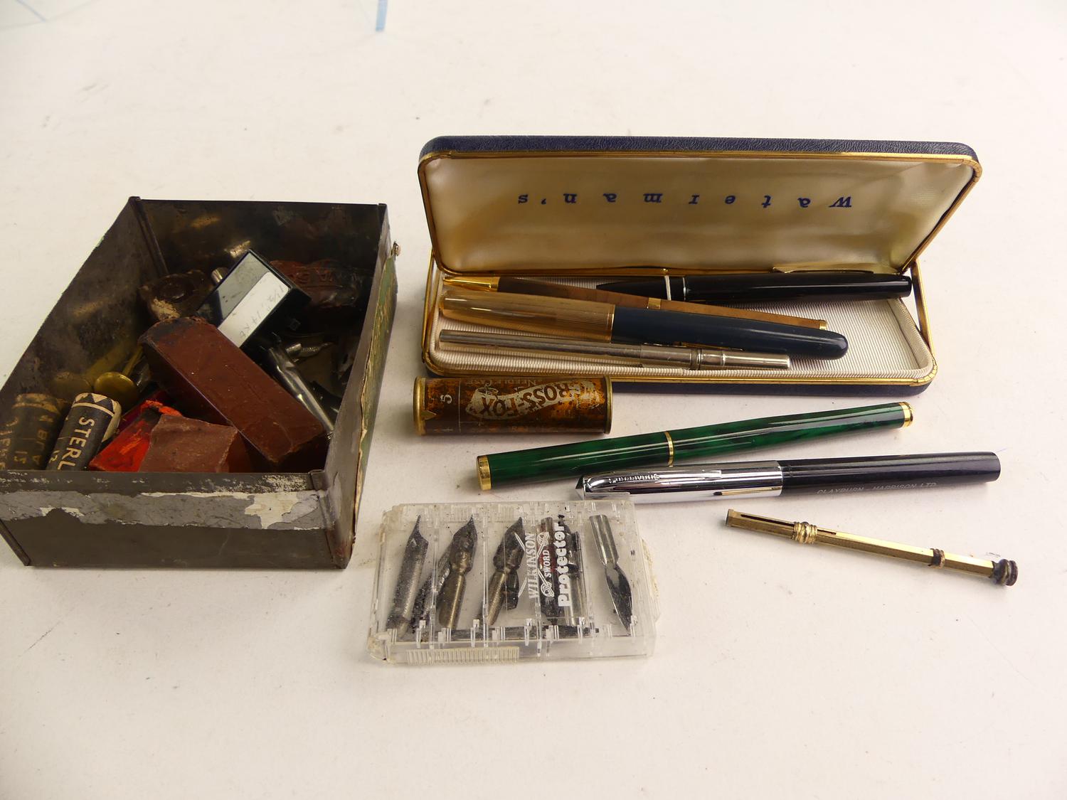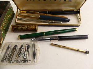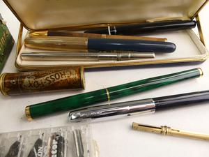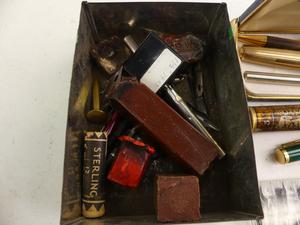 lot of pens and writing items