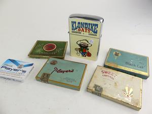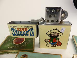 klondke days edmonton alberta promo lighter with vintage cigarette tins
