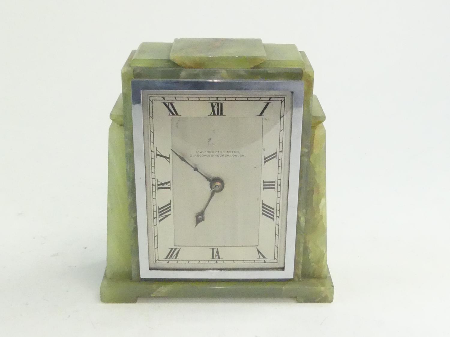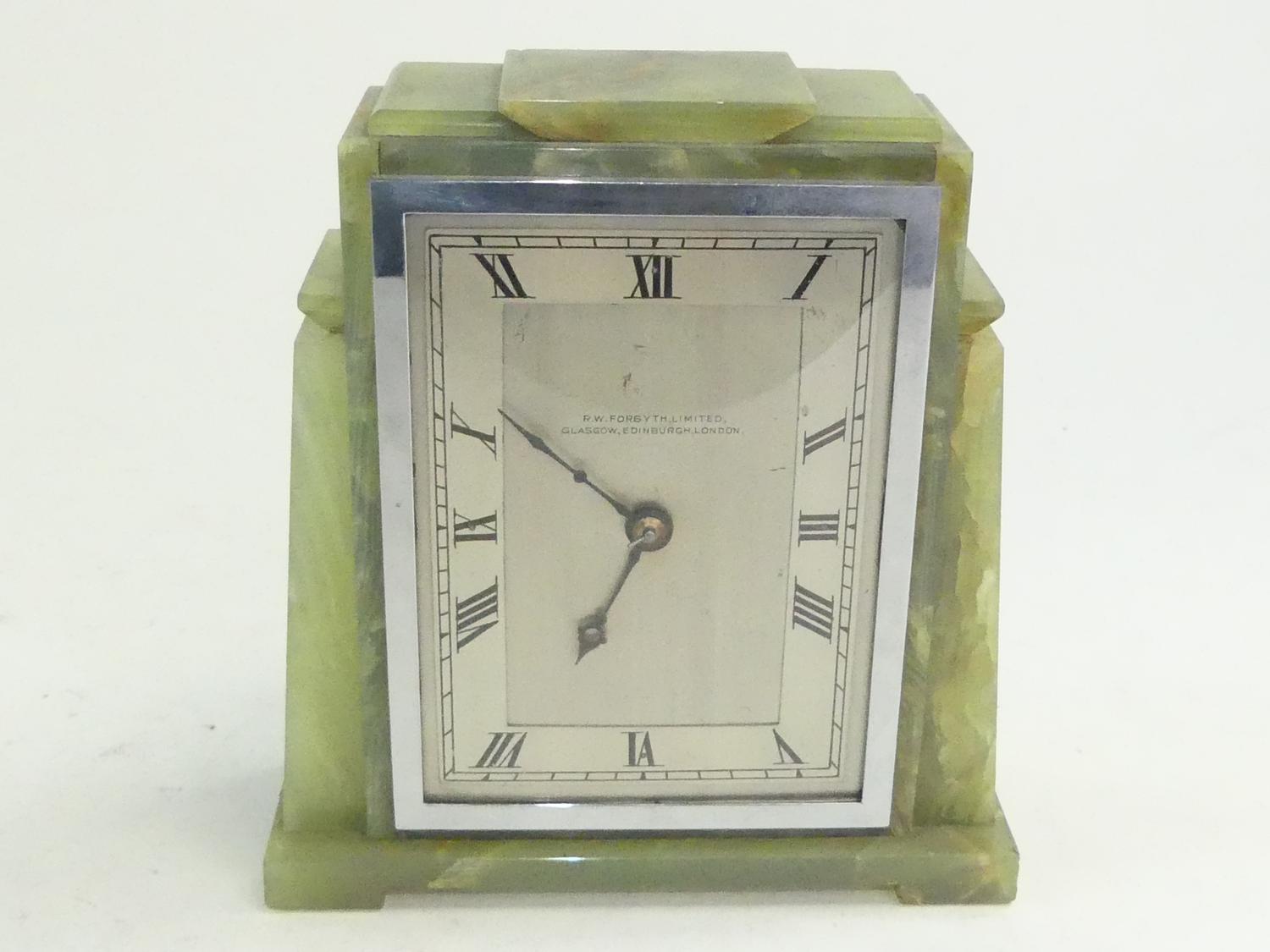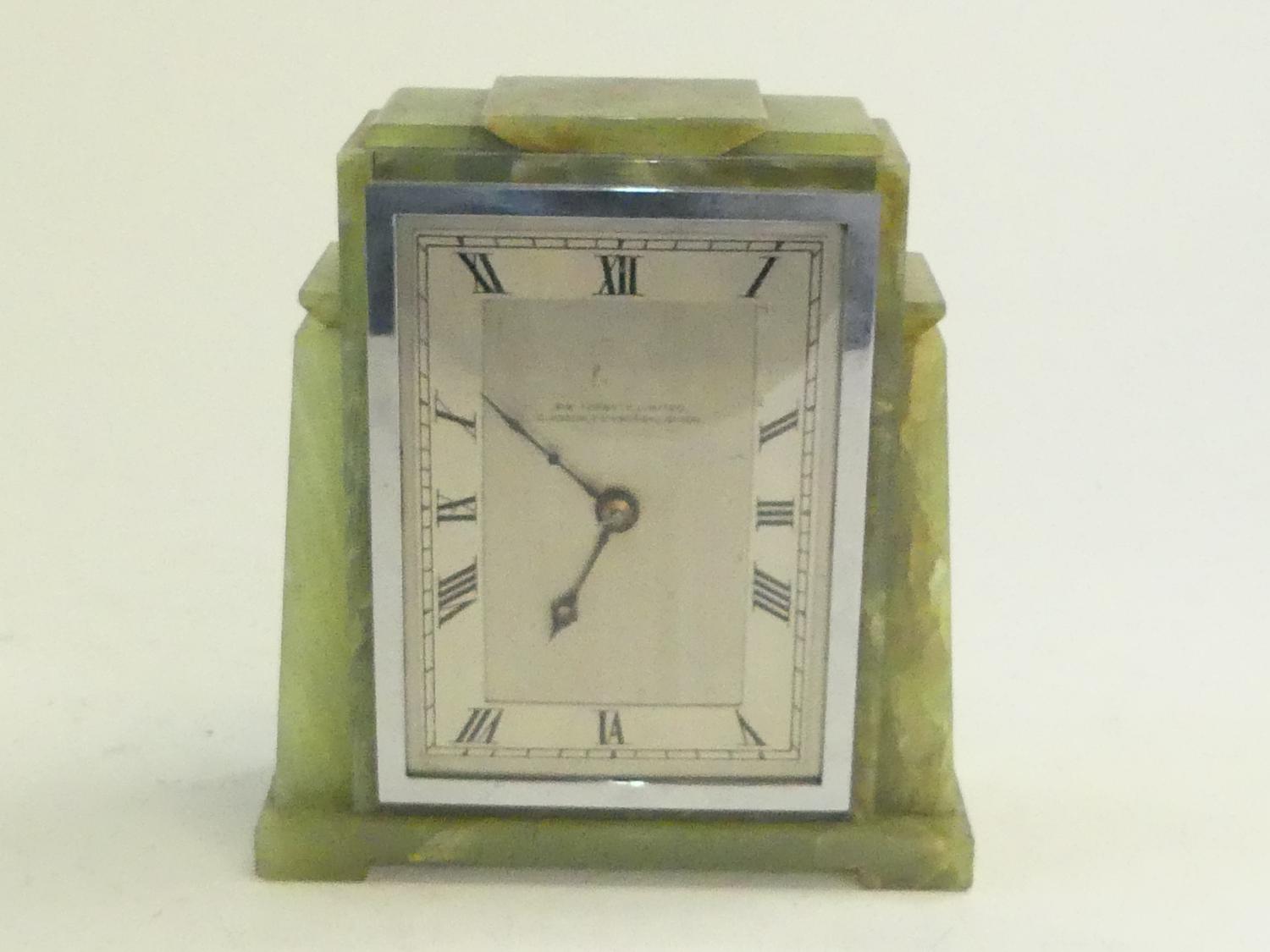 art deco french green marble desk clock