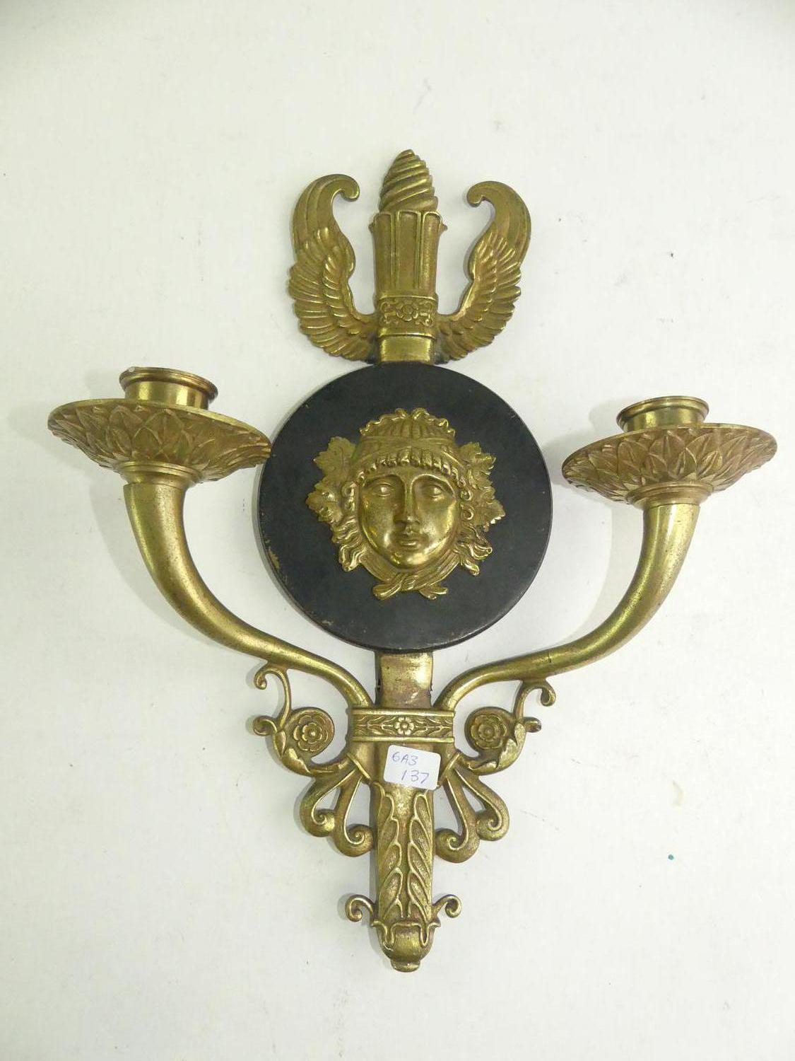 late 19th century french 2 branch wall sconce, ht 12"