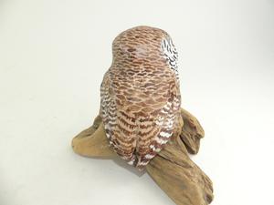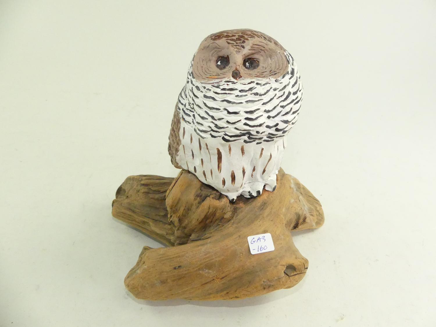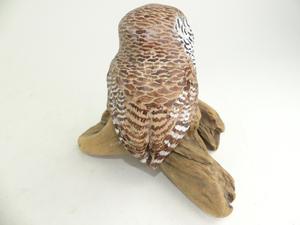 edith lansdowne painted clay sculpture of an owl on stand
