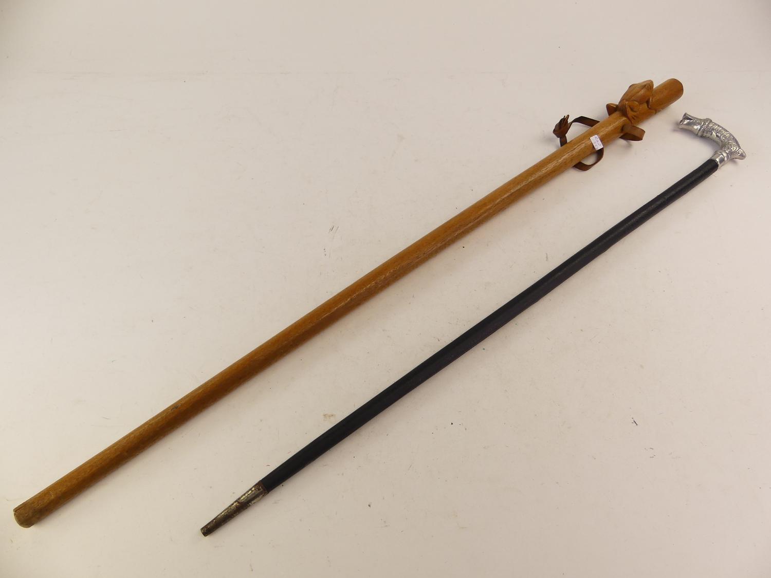 frog carved walking stick with a cane