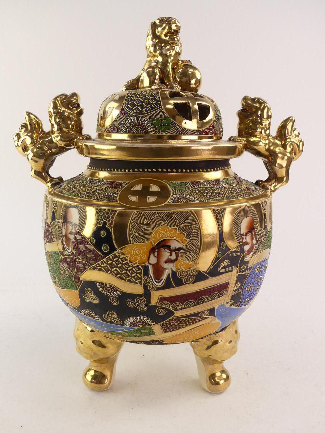 japanese satsuma footed censor, ht. 17"