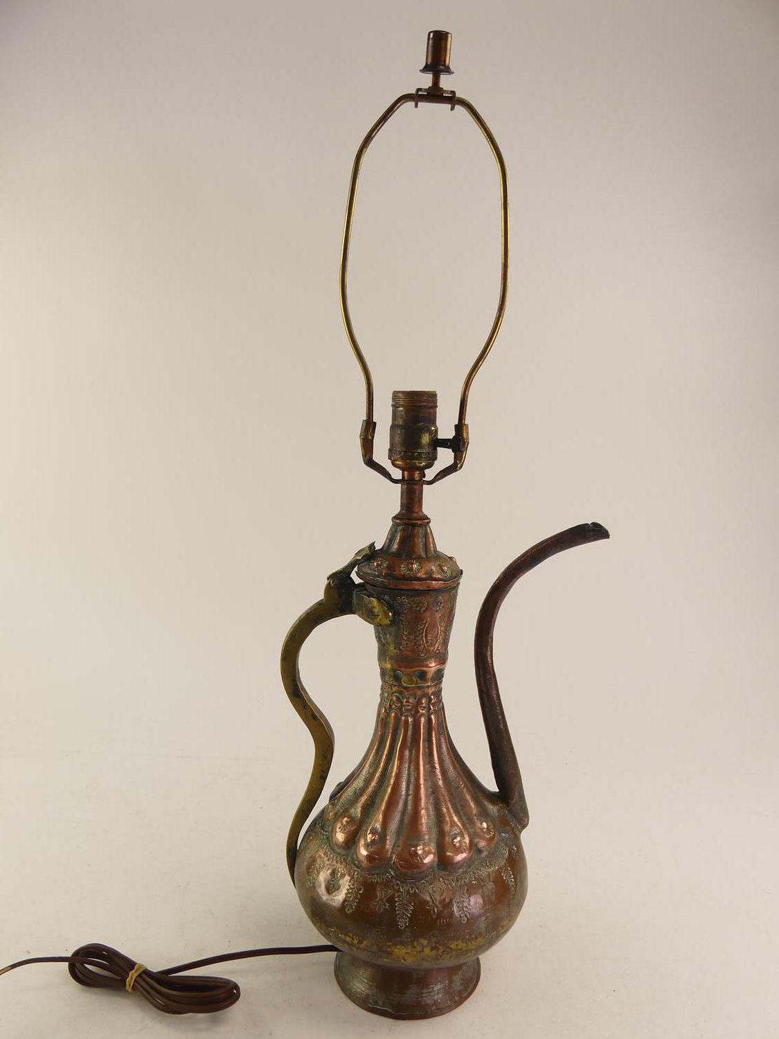 middle eastern copper ewer, lamp