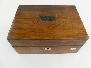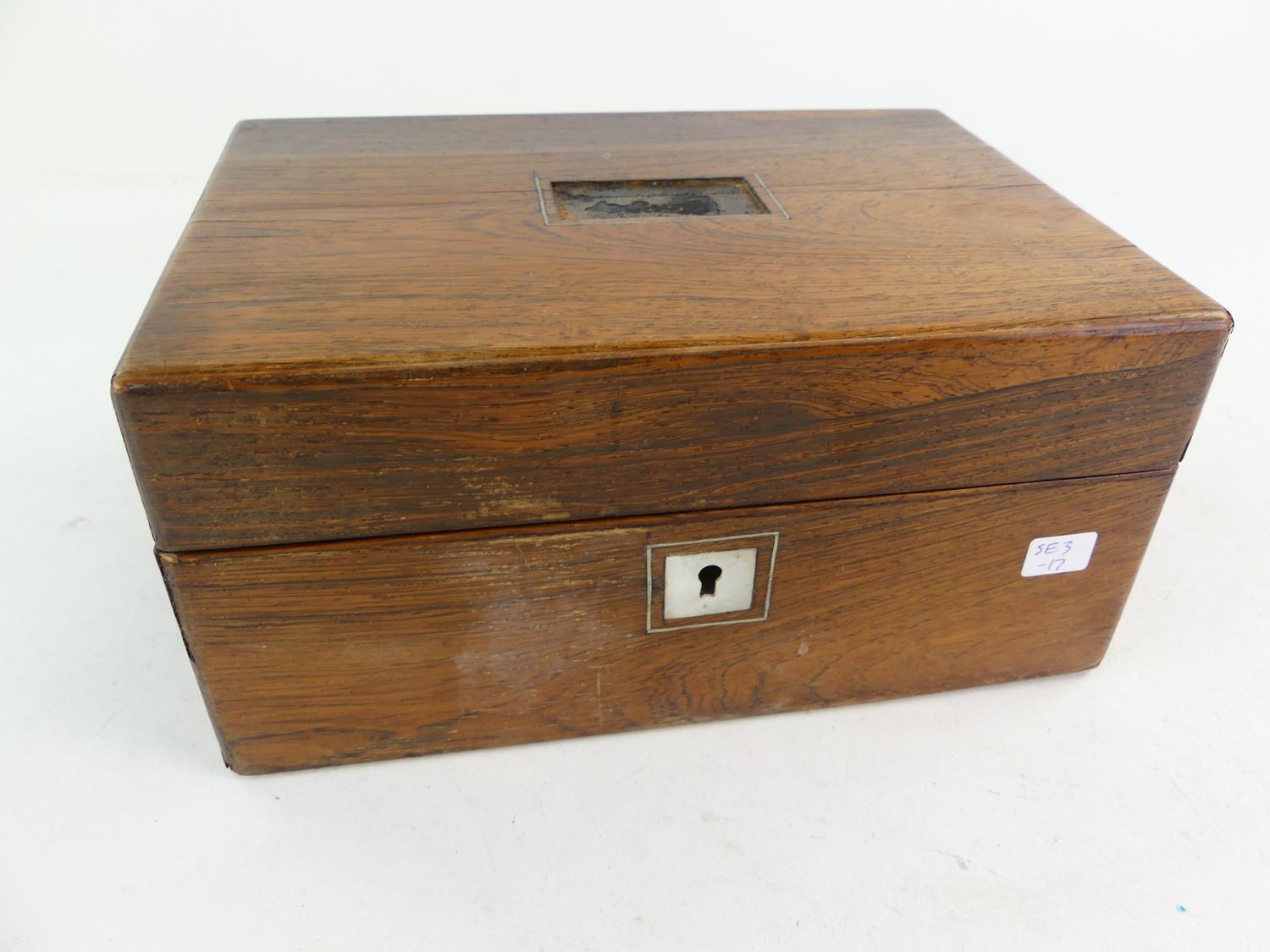 victorian rosewood sewing box with mother-of-pearl escutcheon, 4 3/4" x 9 3/4" x 6 3/4"