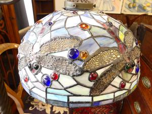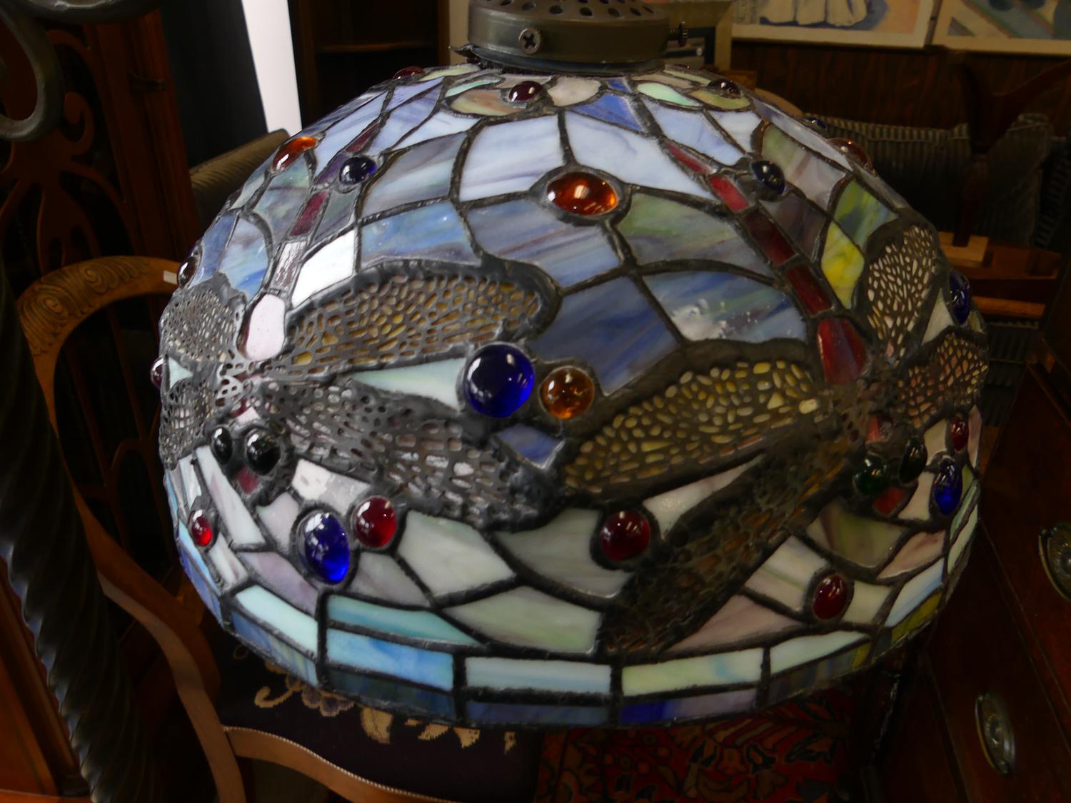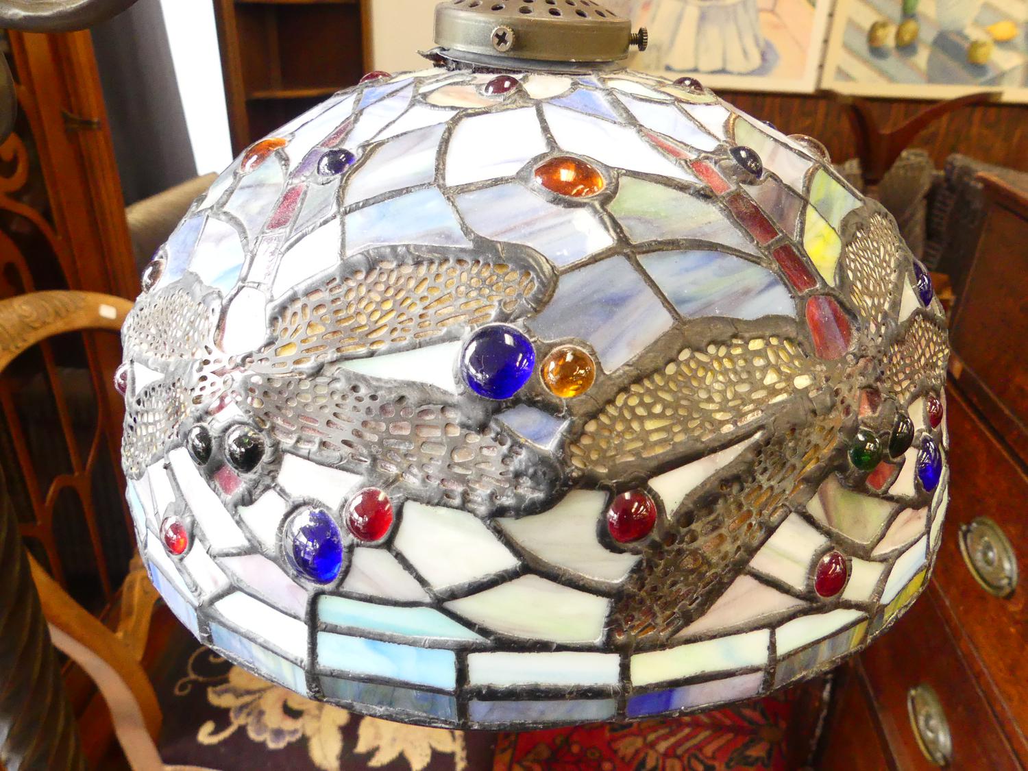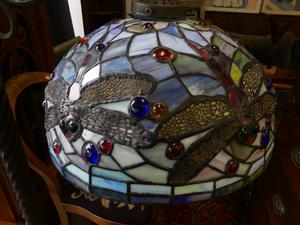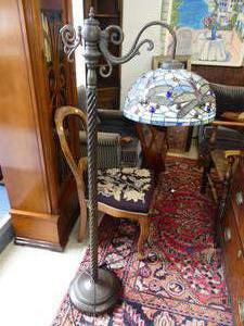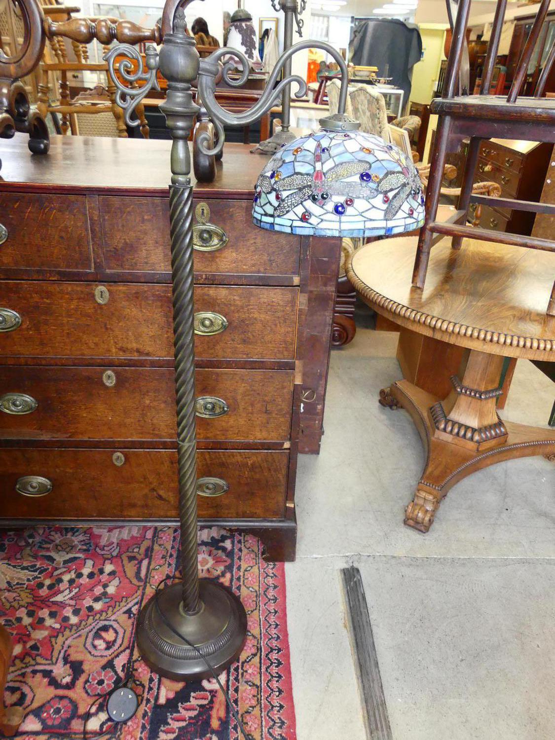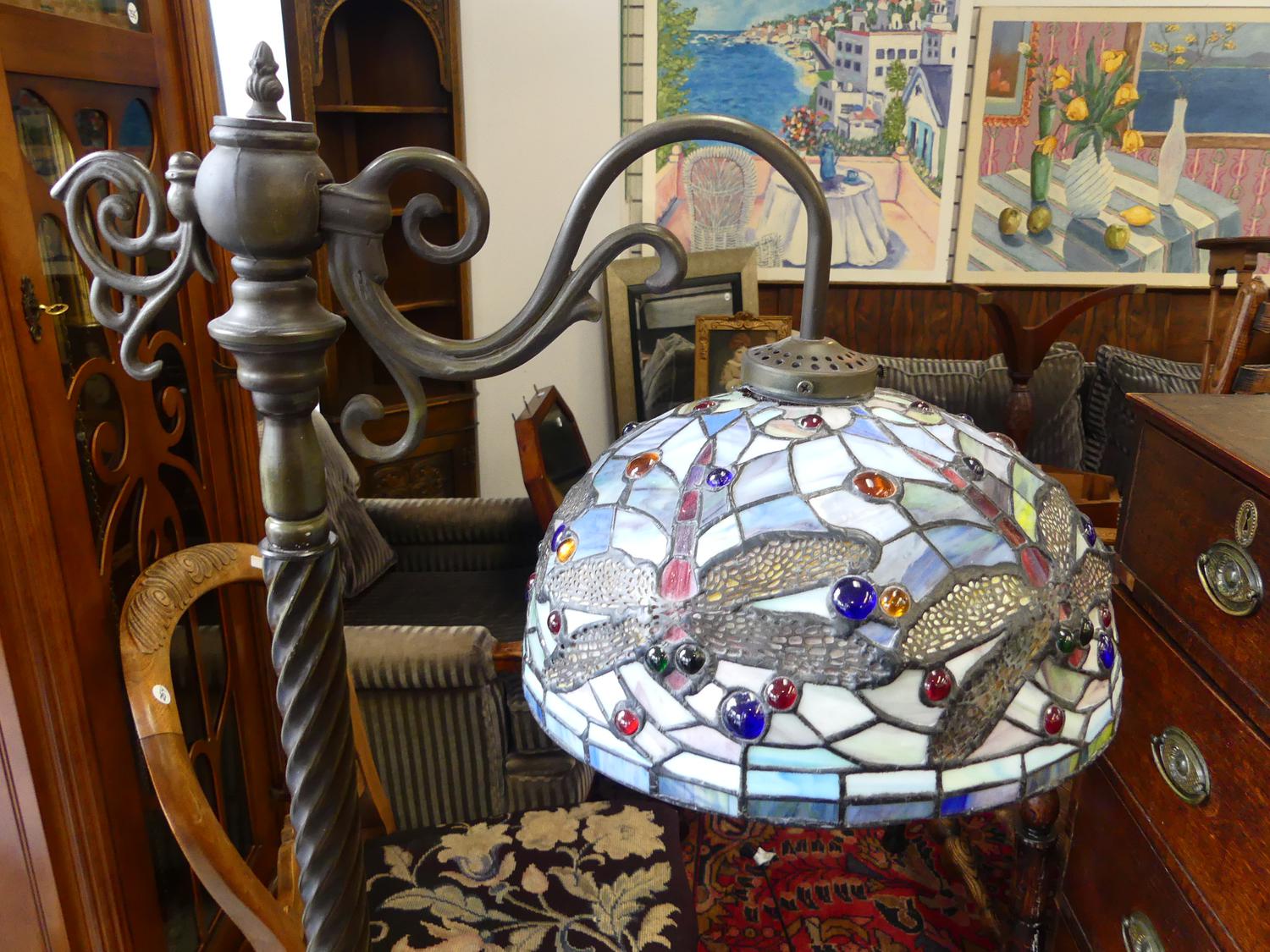 tiffany style "dragonfly" bridge lamp, ht 53" **shade requires restoration**