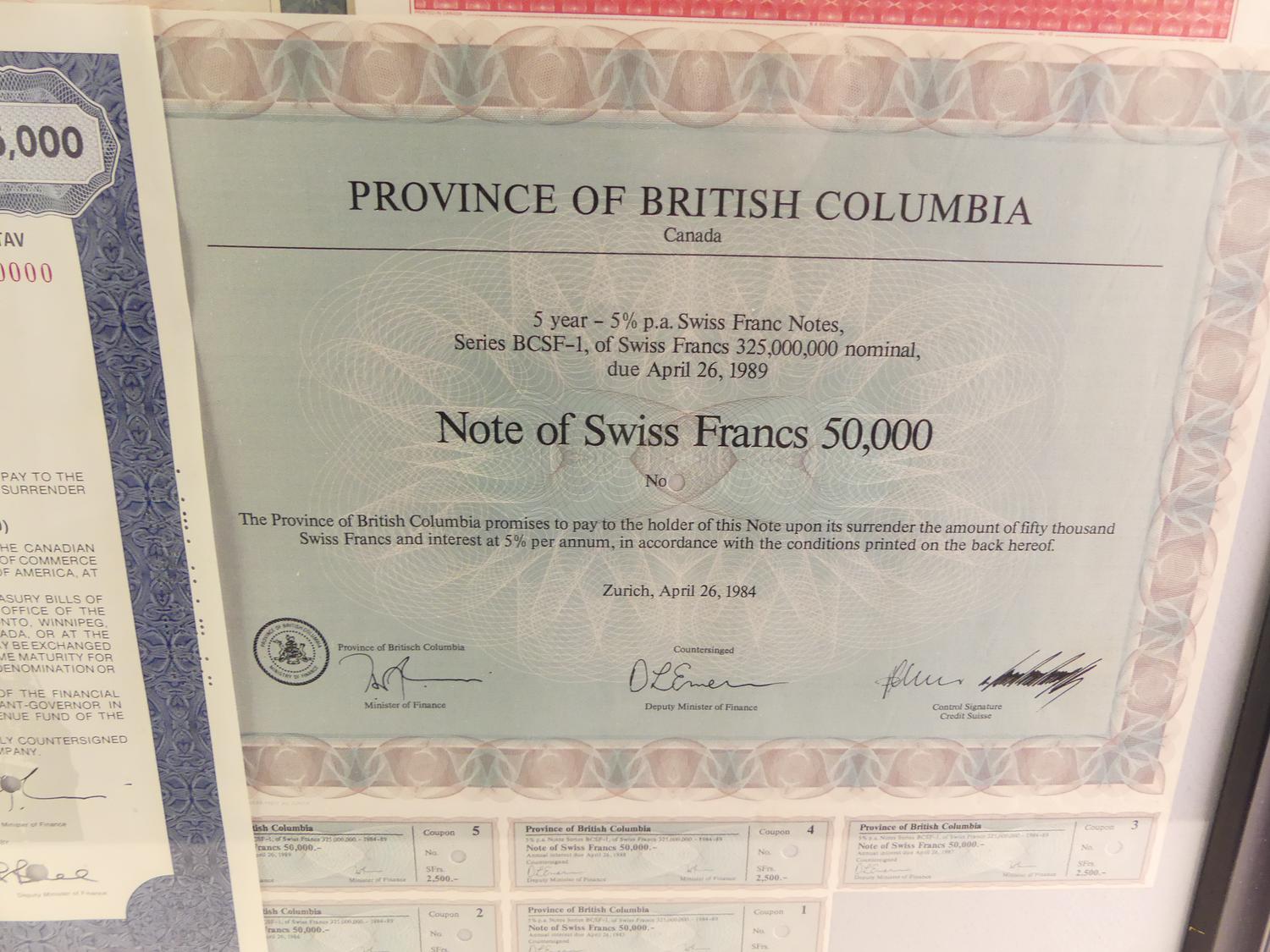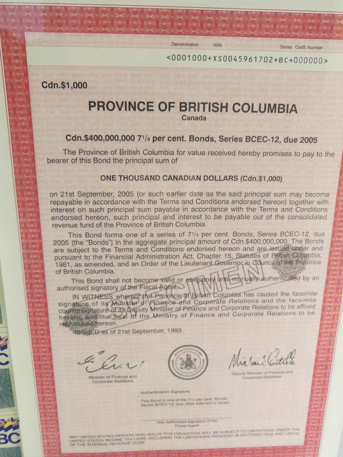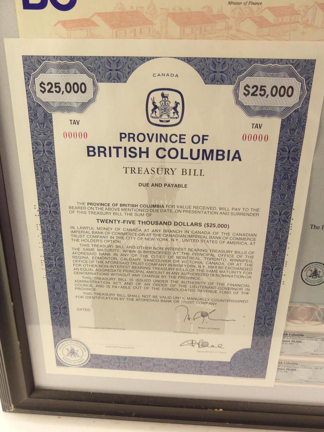 framed group of bc stocks and bonds