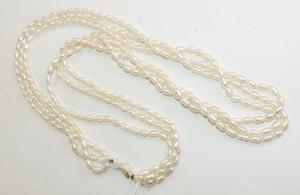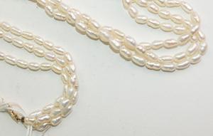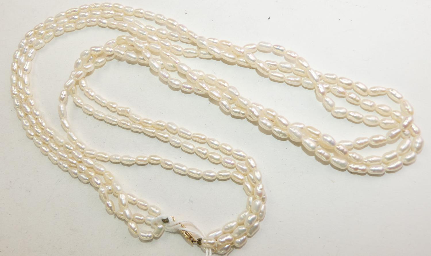 three strand fresh water pearl necklace with 14k yellow gold clasp, length 24"
