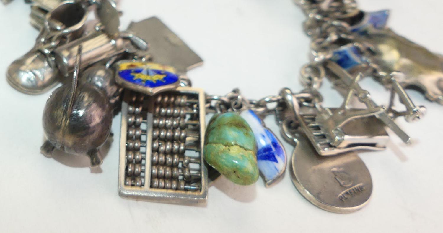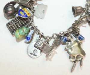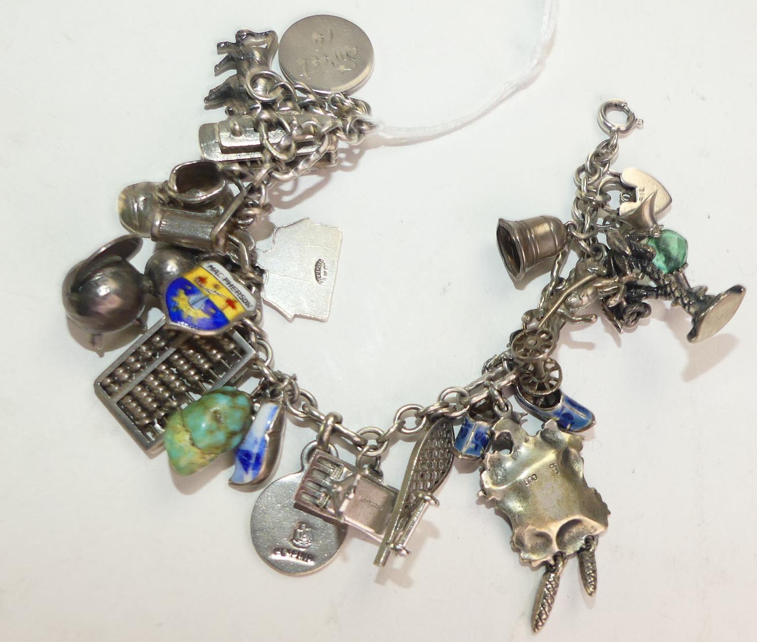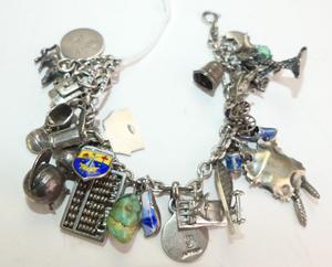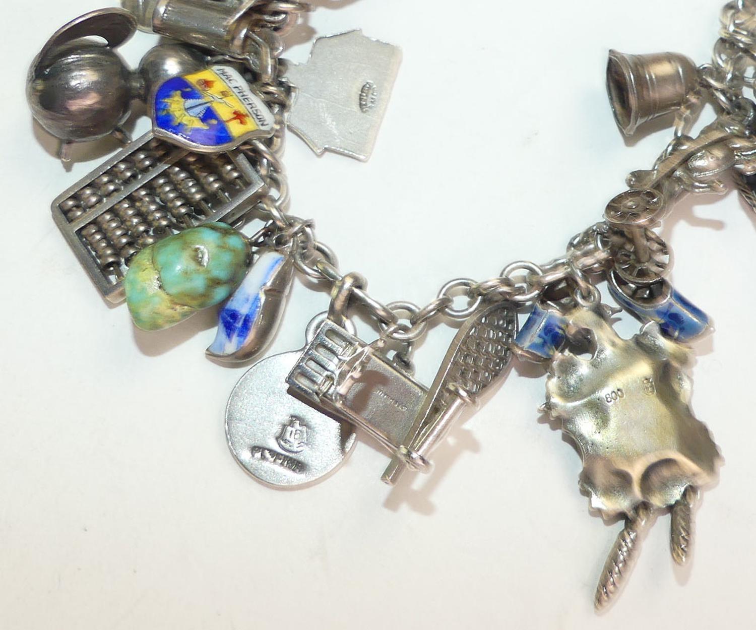 antique sterling silver and .800 charm bracelet, weighing approx 62 grams