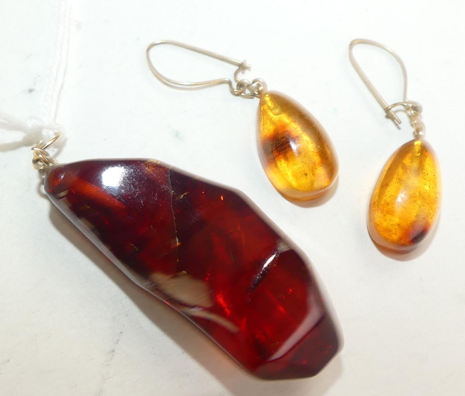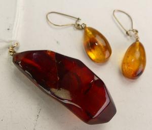 vintage amber pendant and earrings